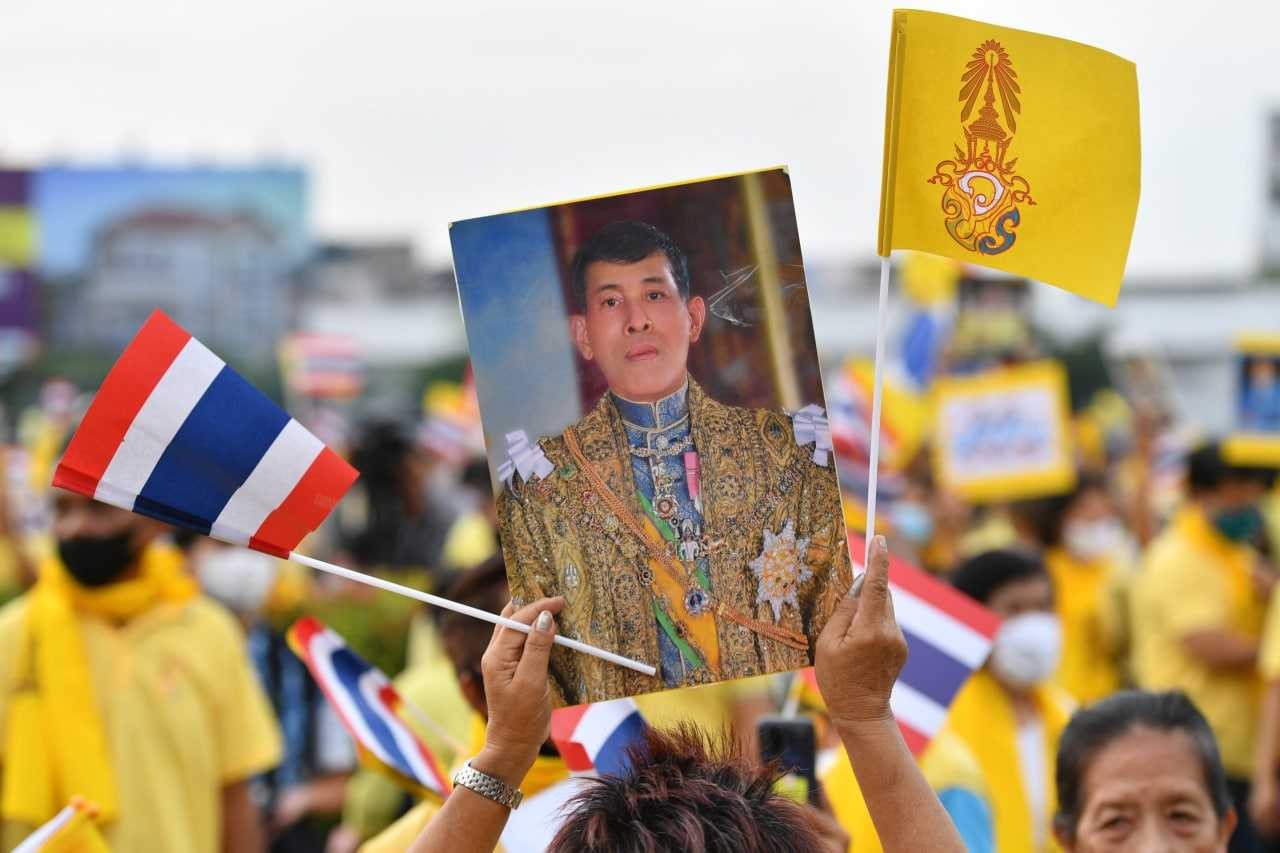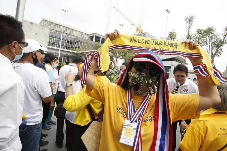បាងកក៖ ក្រុមអាវលឿង ដែលគាំទ្ររបបរាជានិយម បានធ្វើការតវ៉ានៅខាងមុខរដ្ឋសភា នៃប្រទេសថៃ នាទីក្រុងបាងកក នៅថ្ងៃអង្គារ ទី១៧ ខែវិច្ឆិកា ឆ្នាំ២០២០នេះ ដើម្បីស្នើឱ្យរដ្ឋសភាថៃ ច្រានចោលនូវសំណើកែរដ្ឋធម្មនុញ្ញ ដែលក្រុមអ្នកតវ៉ាប្រឆាំងរាជរដ្ឋាភិបាលថៃ បានធ្វើការទាមទារជាច្រើនខែកន្លងមកនេះ។