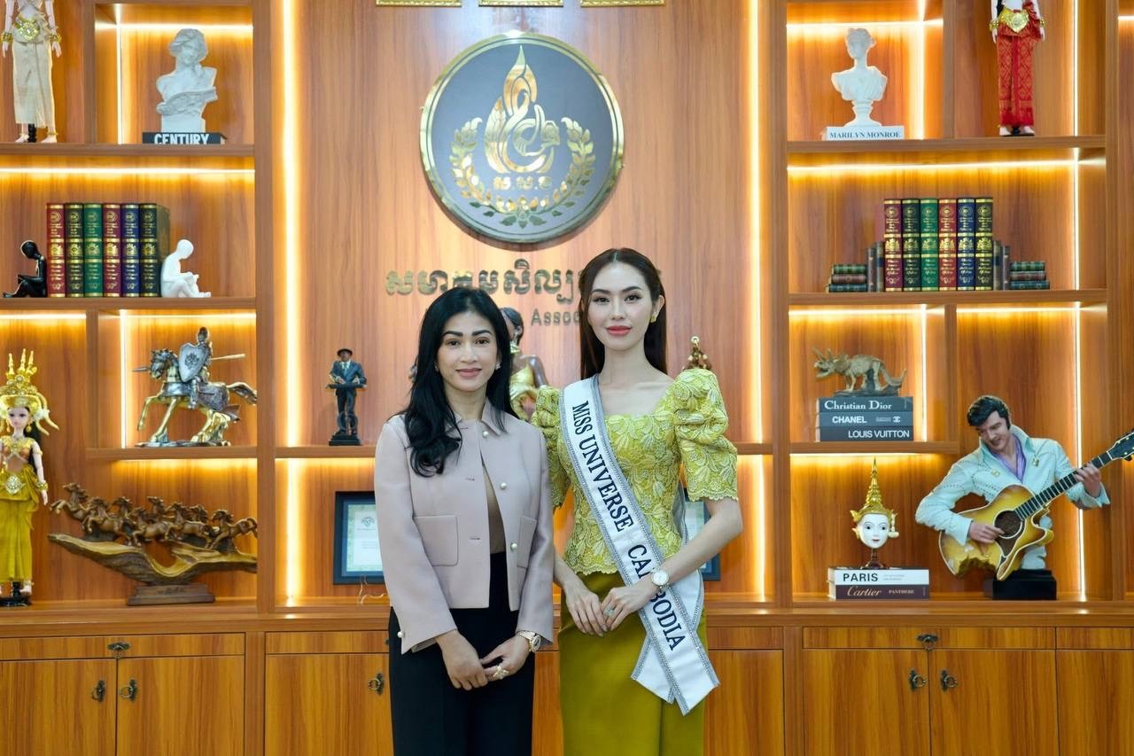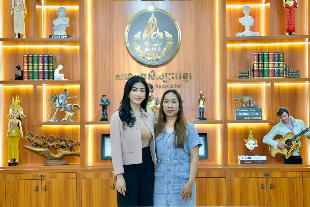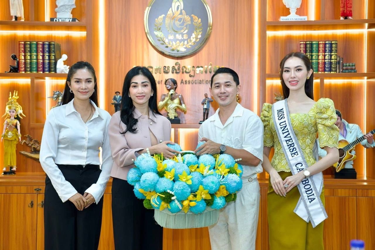 ភ្នំពេញ៖ លោកជំទាវអ្នកឧកញ៉ា ម៉ៅ ចំណាន គិតម៉េង ប្រធានសមាគមសិល្បករខ្មែរ នៅរសៀលថ្ងៃទី២១ ខែតុលា ឆ្នាំ២០២៥ បានអនុញ្ញាតឱ្យប្រតិភូ និងម្ចាស់មកុដកញ្ញាឯកចក្រវាឡកម្ពុជា (Miss Universe Cambodia) ឆ្នាំ២០២៥ ថៃ នារីសុជាតា (ហ្វីយ៉ាតា) ចូលជួបសម្តែងការគួរសម និងពិភាក្សាការងារ។