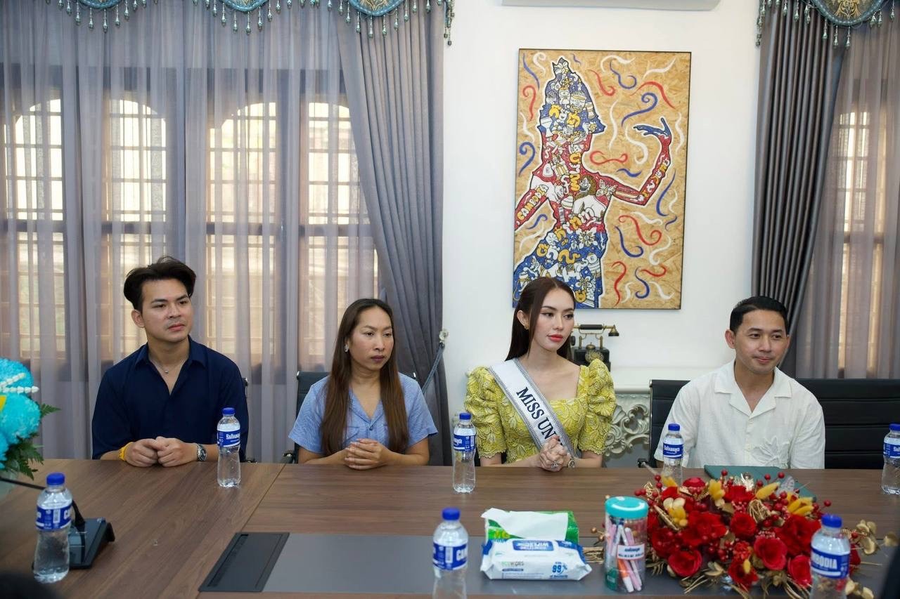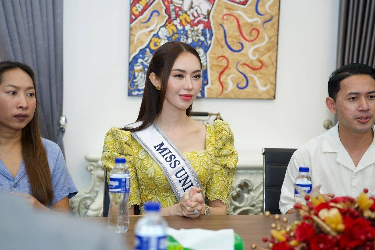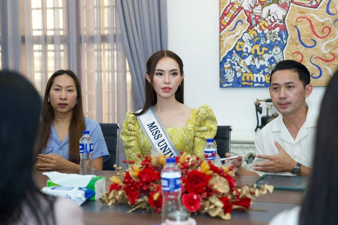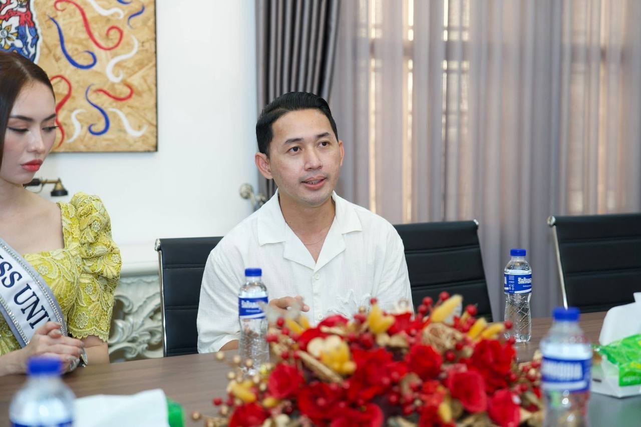 ភ្នំពេញ៖ លោកជំទាវអ្នកឧកញ៉ា ម៉ៅ ចំណាន គិតម៉េង ប្រធានសមាគមសិល្បករខ្មែរ នៅរសៀលថ្ងៃទី២១ ខែតុលា ឆ្នាំ២០២៥ បានអនុញ្ញាតឱ្យប្រតិភូ និងម្ចាស់មកុដកញ្ញាឯកចក្រវាឡកម្ពុជា (Miss Universe Cambodia) ឆ្នាំ២០២៥ ថៃ នារីសុជាតា (ហ្វីយ៉ាតា) ចូលជួបសម្តែងការគួរសម និងពិភាក្សាការងារ។