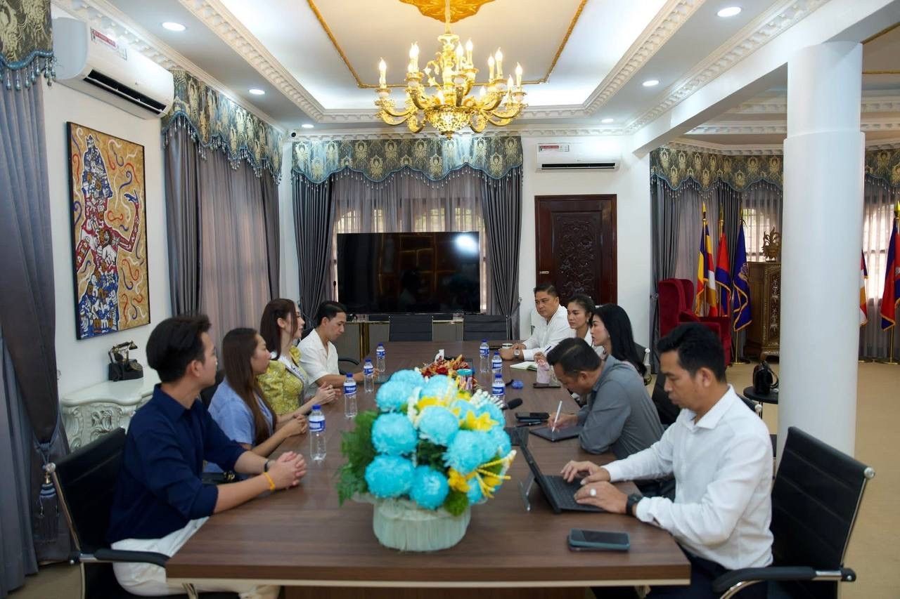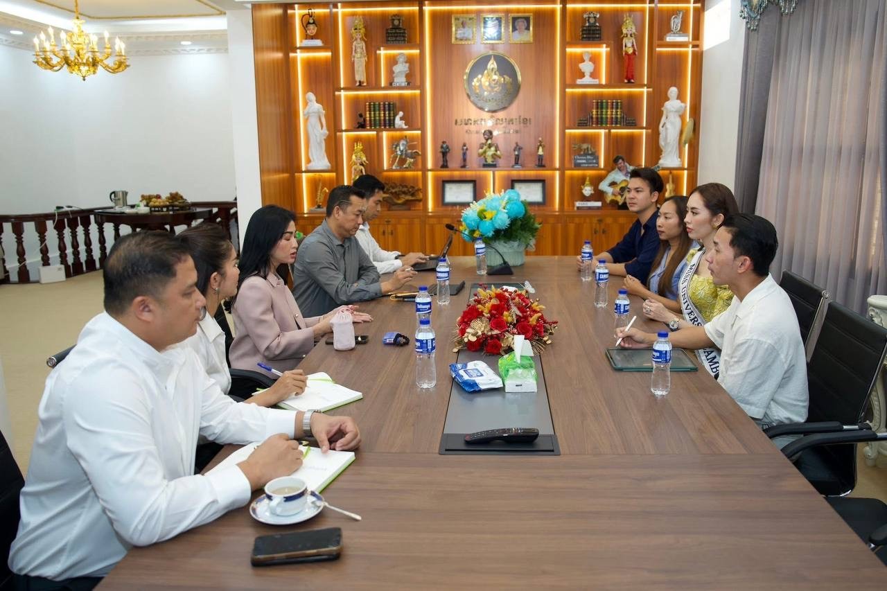 លោកជំទាវអ្នកឧកញ៉ា ម៉ៅ ចំណាន គិតម៉េង ប្រធានសមាគមសិល្បករខ្មែរ អនុញ្ញាតឱ្យប្រតិភូ និងម្ចាស់មកុដកញ្ញាឯកចក្រវាឡកម្ពុជា ចូលជួបសម្តែងការគួរសម និងពិភាក្សាការងារ