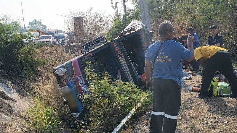 ក្រឡាប់រថយន្តក្រុងដឹកកម្មកររោងចក្រនៅខេត្តឈុនបុរី ប្រទេសថៃ បណ្ដាលឱ្យមនុស្ស ៤២នាក់រងរបួសធ្ងន់ស្រាល