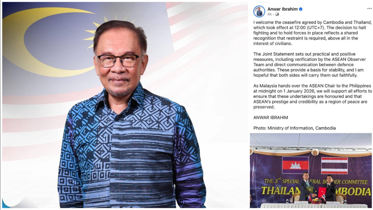 នាយករដ្ឋមន្ត្រីម៉ាឡេស៉ី បង្ហាញការស្វាគមន៍ចំពោះបទឈប់បាញ់រវាងកម្ពុជា-ថៃ