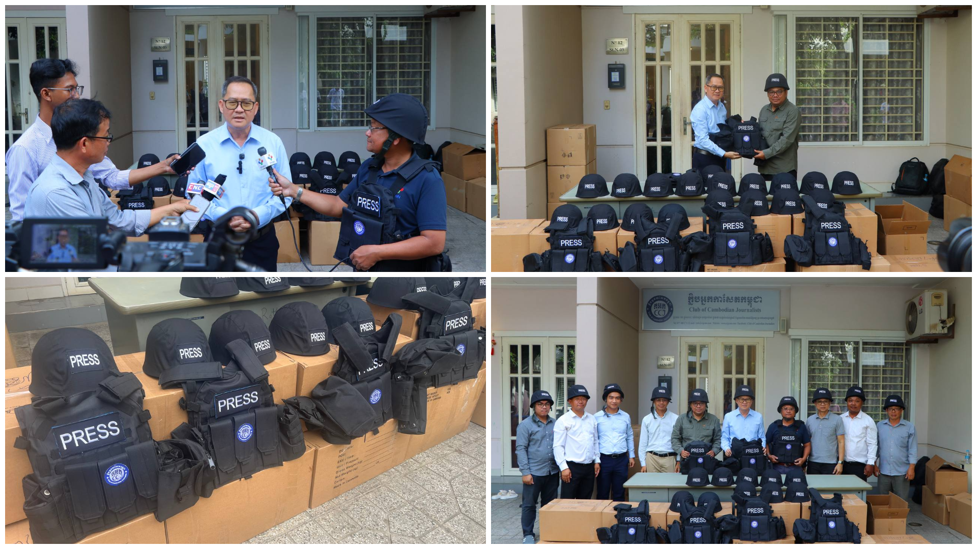 ក្លិបអ្នកកាសែតកម្ពុជា បានចែកអាវក្រោះ និងមួកសុវត្ថិភាពដល់អ្នកសារព័ត៌មានមកពី ៣៦ស្ថាប័ន ដើម្បីជួយការពារសុវត្ថិភាព ពេលបំពេញការងារនៅតាមបណ្តោយព្រំដែនកម្ពុជា-ថៃ