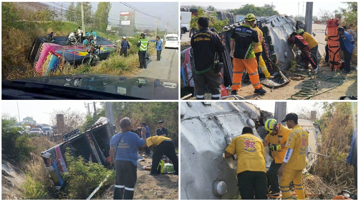 ក្រឡាប់រថយន្តក្រុងដឹកកម្មកររោងចក្រនៅខេត្តឈុនបុរី ប្រទេសថៃ បណ្ដាលឱ្យមនុស្ស ៤២នាក់រងរបួសធ្ងន់ស្រាល
