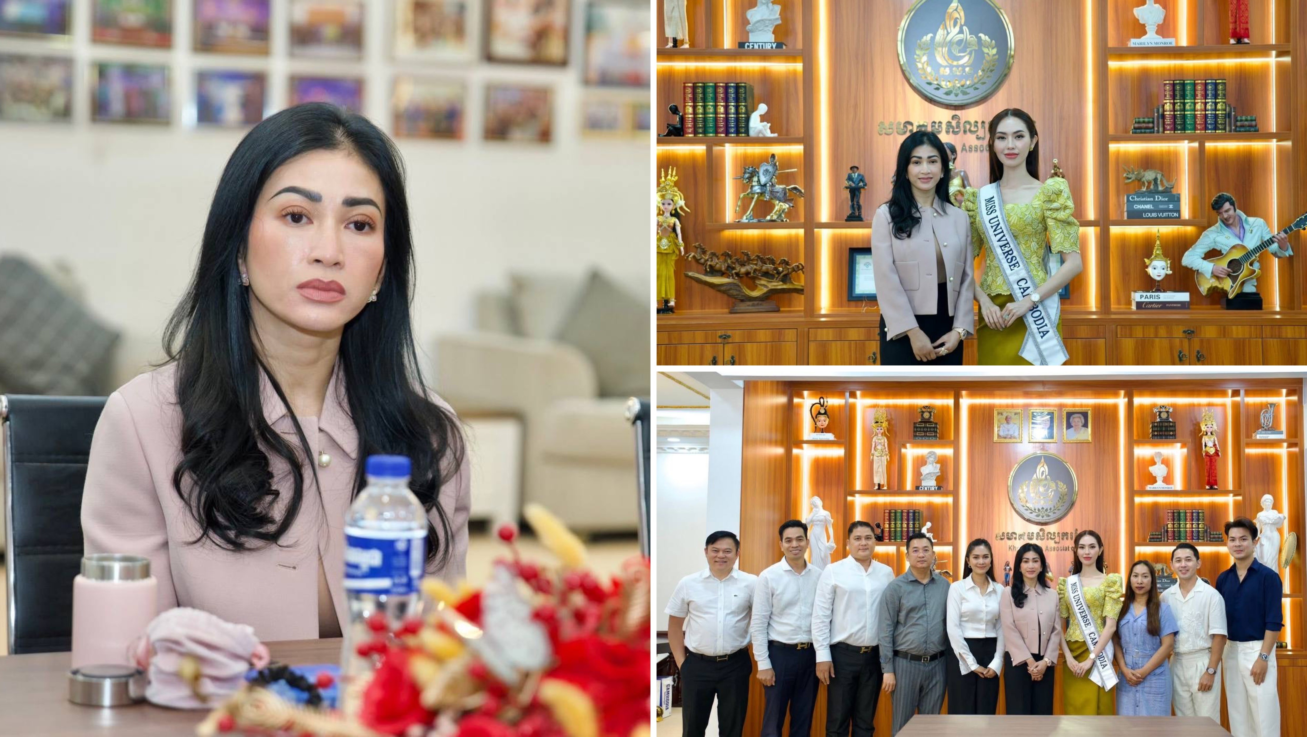 លោកជំទាវអ្នកឧកញ៉ា ម៉ៅ ចំណាន គិតម៉េង ប្រធានសមាគមសិល្បករខ្មែរ អនុញ្ញាតឱ្យប្រតិភូ និងម្ចាស់មកុដកញ្ញាឯកចក្រវាឡកម្ពុជា ចូលជួបសម្តែងការគួរសម និងពិភាក្សាការងារ