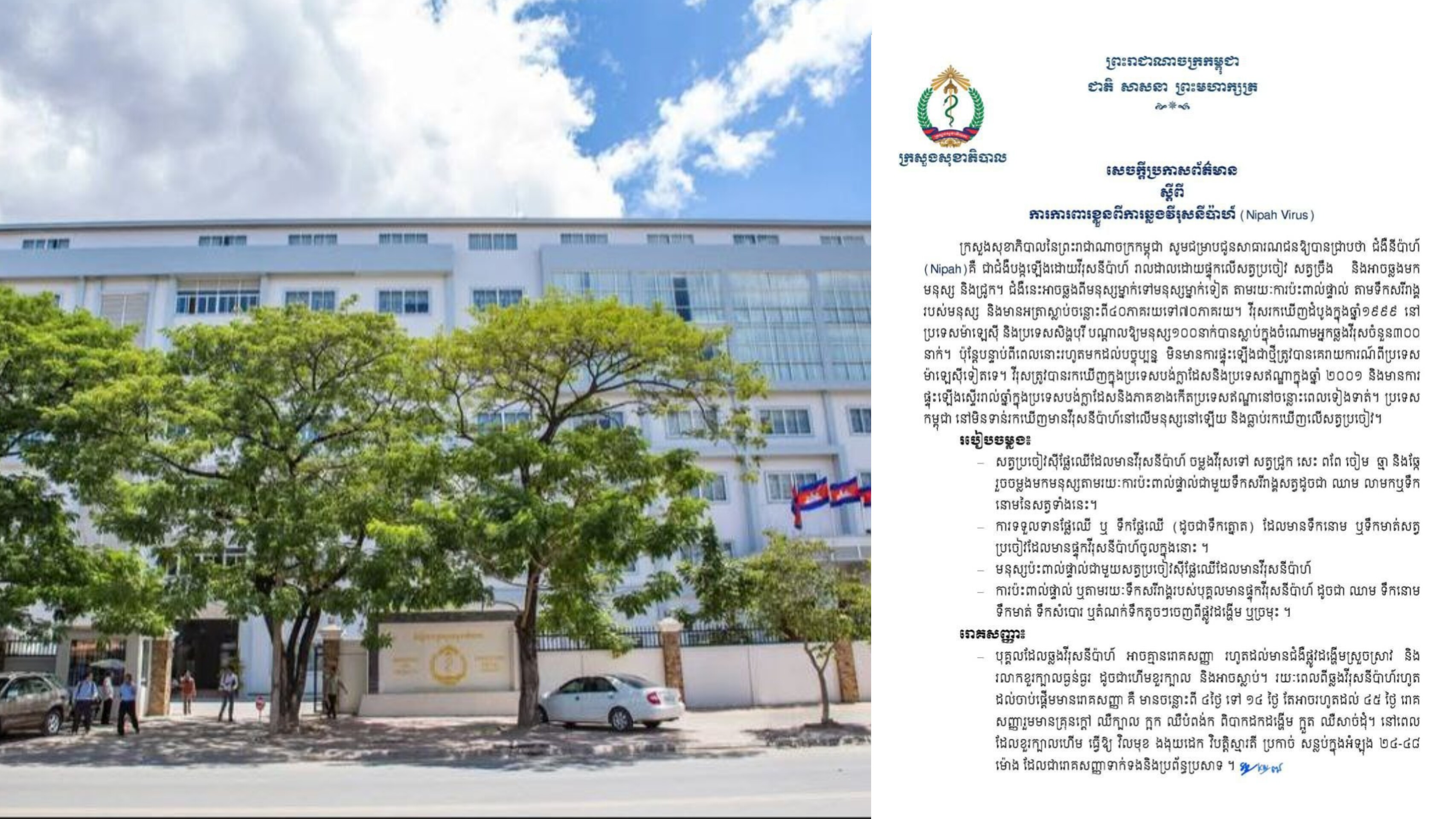 កម្ពុជាមិនទាន់រកឃើញមានវីរុស នីប៉ាហ៍ នៅលើមនុស្សនៅឡើយទេ តែធ្លាប់រកឃើញលើសត្វប្រចៀវ