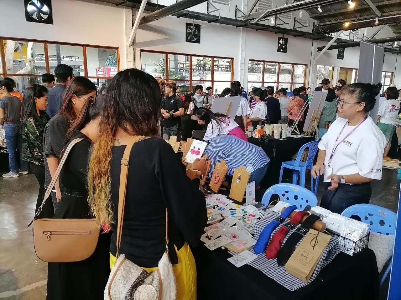 បន្ទាប់ពីចប់ពិធីបិទវគ្គបណ្តុះបណ្តាលនេះ សាធារណជនបានដើរទស្សនាតាមស្តង់ពិព័រណ៍ ដែលស្ត្រីមកពីកម្មវិធី AWE បង្ហាញដាក់តាំងផលិតផល និងបង្ហាញពីសេវាកម្មរបស់ពួកគេ។ ព្រឹត្តិការណ៍នេះបានបិទបញ្ចប់ជាមួយនឹងពិព័រណ៍ដែលរៀបចំដោយសមាជិកចូលរួមក្នុងកម្មវិធី AWE ដែលមានការបង្ហាញក្បាច់គុនខ្មែរ ដោយក្លឹប Cambodia Top Team Fight and Fitness Gym, ការបង្ហាញរបាំខ្មែរ ដោយសមាជិកក្រុម Bompay និងការបង្ហាញម៉ូតដែលបង្ហាញពីសម្លៀកបំពាក់, គ្រឿងតុបតែង, ម្សៅ និងអ្នករចនាដែលរៀបចំដោយក្រុមម៉ូដែល Van Brand និង Random Models ជាមួយនឹងការផាត់មុខដោយក្រុមហ៊ុន Revlon និងសេវាកម្មធ្វើសក់ដោយក្រុមហ៊ុន Kate Korpi Salon។