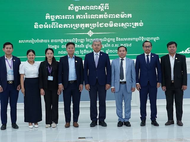 សូមជម្រាបថា សិក្ខាសាលានេះ ត្រូវបានរៀបចំឡើងដោយនាយករដ្ឋានកម្មសិទ្ធិបញ្ញានៃក្រសួងពាណិជ្ជកម្ម និងមាគមកម្មសិទ្ធិបញ្ញាកម្ពុជា ក្នុងគោលបំណងនៃការរៀបចំសិក្ខាសាលានេះ គឺដើម្បីផ្តល់ព័ត៌មានបច្ចុប្បន្នភាពលើវិស័យកម្មសិទ្ធិបញ្ញា ជូនសាធារណជន និងនិស្សិត ការលើកកម្ពស់ចំណេះដឹងសាធារណៈពាក់ព័ន្ធនឹងម៉ាកពាណិជ្ជកម្ម លិខិតបទដ្ឋានគតិយុត្តវិស័យកម្មសិទ្ធិបញ្ញា នីតិវិធីចុះបញ្ជីកម្មសិទ្ធិបញ្ញា ជាពិសេសការចុះបញ្ជីម៉ាក ការជំរុញឱ្យយុវជនយល់ពីសារៈសំខាន់នៃកម្មសិទ្ធិបញ្ញា និងយន្តការដោះស្រាយវិវាទកម្មសិទ្ធិបញ្ញា ជូន មេធាវី សាស្ត្រាចារ្យនៃសាកលវិទ្យាល័យបៀលប្រាយ និងពុទ្ធិសាកលវិទ្យាល័យព្រះសីហមុនីរាជា និងនិស្សិតនៃសាកលវិទ្យាល័យទាំងពីរផងដែរ៕
