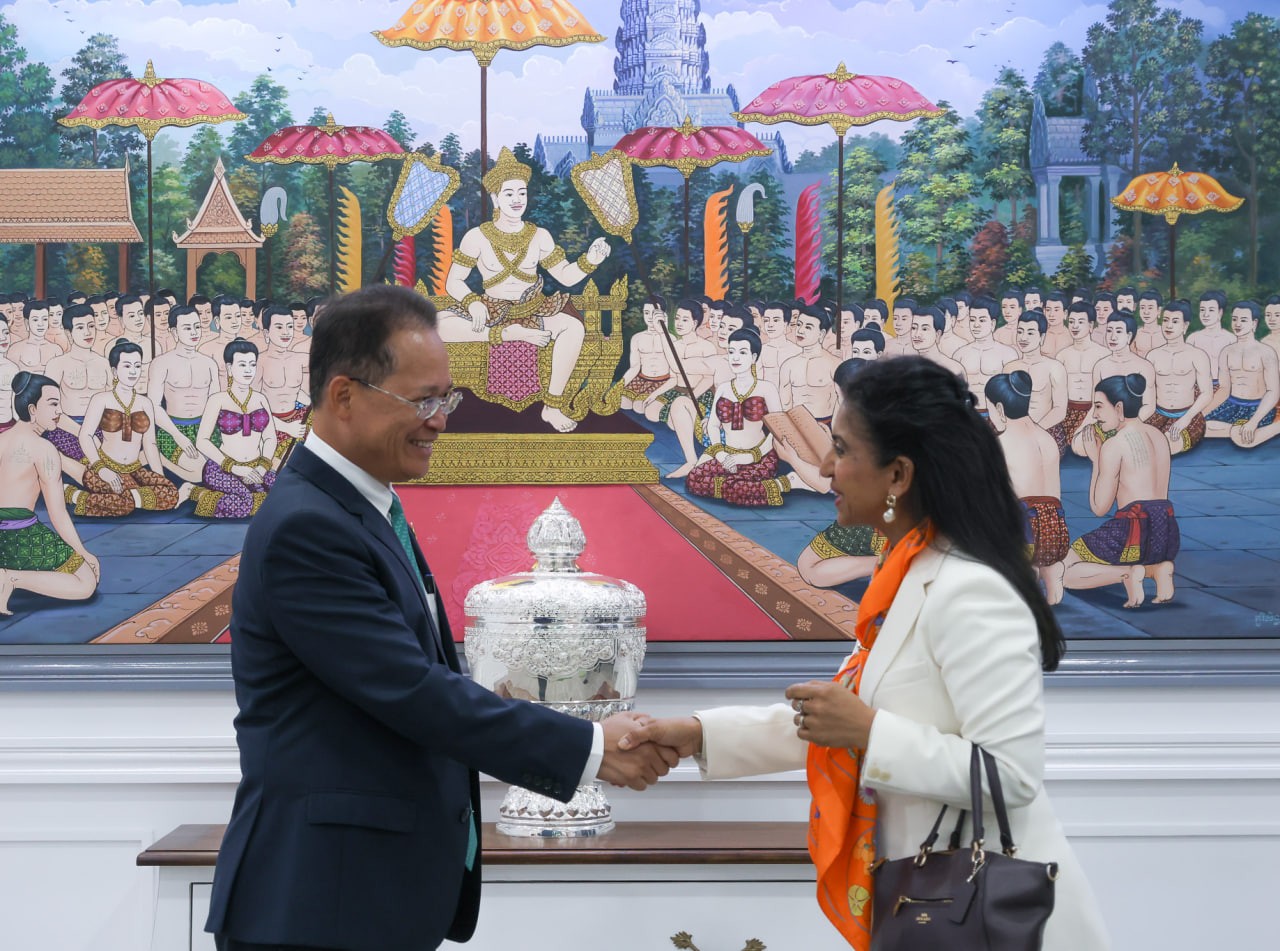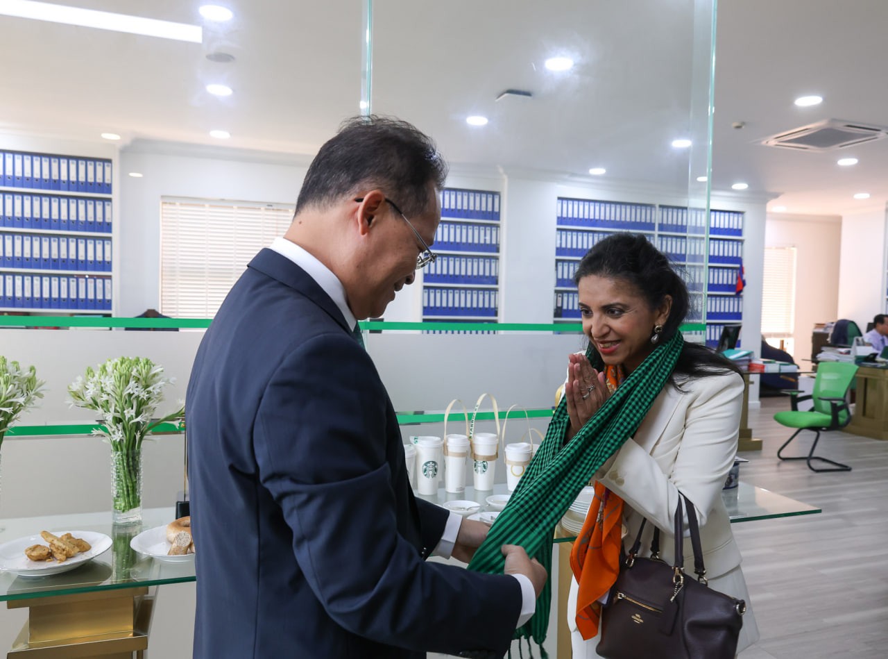 ភ្នំពេញ៖ លោកស្រី YASMIN SIDDIQI នាយកថ្មីធនាគារអភិវឌ្ឍន៍អាស៊ី (ADB) ប្រចាំប្រទេសកម្ពុជា បានជួបពិភាក្សាការងារជាមួយ លោក អ៊ាង សុផល្លែត រដ្ឋមន្ត្រីក្រសួងបរិស្ថាន នៅថ្ងៃទី២៦ ខែវិច្ឆិកា ឆ្នាំ២០២៥។