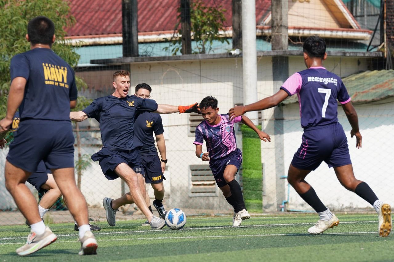 ក្រុមកងទ័ពជើងទឹកនាវាចម្បាំង USS CINCINNATI ប្រកួតបាល់ទាត់មិត្តភាព ជាមួយក្រុមកងទ័ពជើងទឹកកម្ពុជា ដើម្បីរឹតចំណងមិត្តភាព