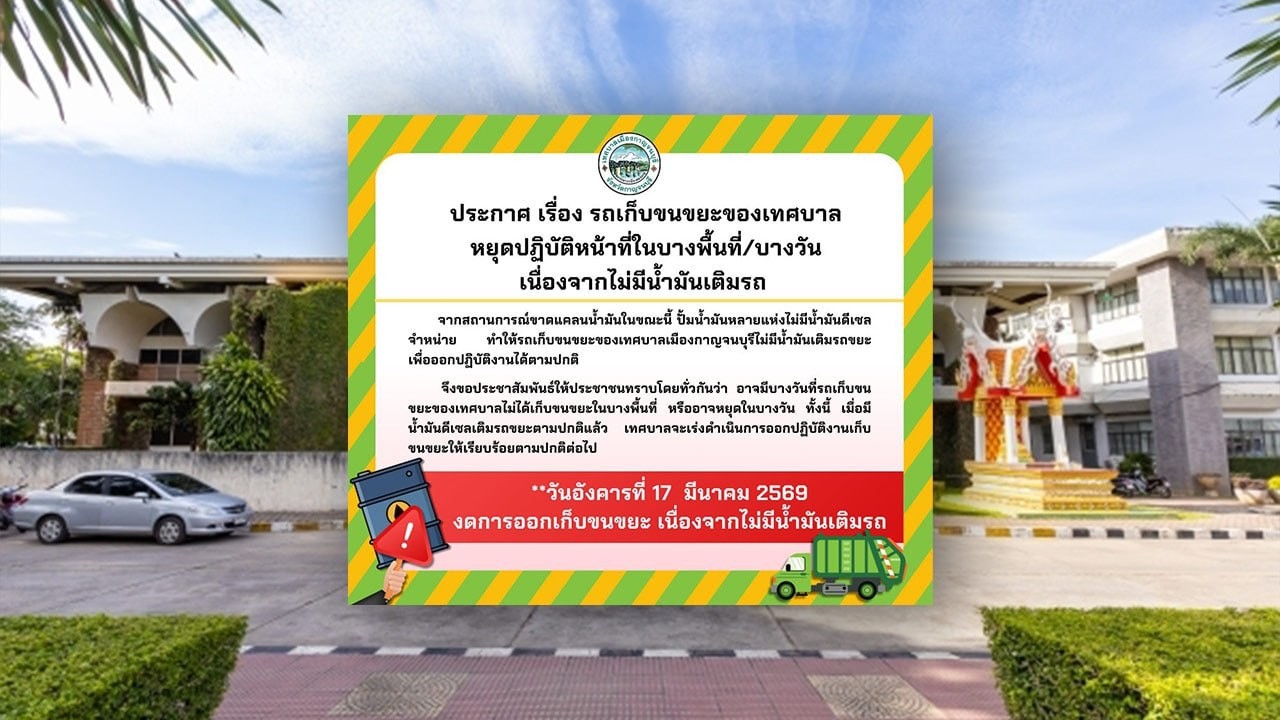 ថៃឡង់ដ៍៖ រដ្ឋបាលក្រុងកញ្ចនៈបុរី (Kanchanaburi) បានប្រកាសផ្អាកសេវាកម្មប្រមូលសំរាមនៅតាមតំបន់មួយចំនួន និងនៅថ្ងៃខ្លះ ដោយសារតែកង្វះខាតប្រេងសាំងនិងប្រេងម៉ាស៊ូត។ នេះបើតាមការបញ្ជាក់ពីមន្ត្រីមូលដ្ឋាន ។