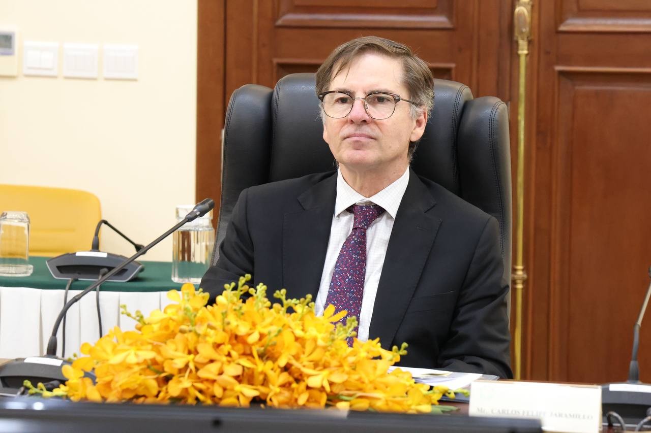 ក្នុងជំនួបនេះ លោក Carlos Felipe Jaramillo បានបញ្ជាក់ពីការប្តេជ្ញាចិត្តរបស់ធនាគារពិភពលោក ក្នុងការបន្តគាំទ្រកម្ពុជា ដើម្បីរួមចំណែកក្នុងដំណើរឆ្ពោះទៅសម្រេចចក្ខុវិស័យកម្ពុជា ឆ្នាំ២០៥០ តាមរយៈក្របខ័ណ្ឌកិច្ចសហប្រតិបត្តិការថ្មី ឆ្នាំ២០២៥-២០២៩ ដែលផ្តោតលើការអភិវឌ្ឍមូលធនមនុស្ស ការបង្កើនការងារល្អ និងការពង្រឹងភាពធន់សង្គម។