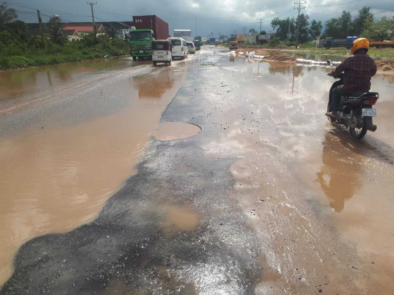 សូមបញ្ជាក់ថា ខេត្តកំពង់ស្ពឺ ជាខេត្តមានការអភិវឌ្ឍខ្លាំងលើវិស័យរោងចក្រ សហគ្រាស និងអចលនទ្រព្យ។ ដូច្នេះបឹងបួរជាច្រើនដែលស្ថិតនៅអមសងខាងផ្លូវ ត្រូវបានចាក់បំពេញដើម្បីសាងសង់ ធ្វើឱ្យទឹកគ្មានកន្លែងស្តុកដូចមុន ហើយផ្លូវទឹកជាច្រើនក៏ត្រូវចាក់លុប ធ្វើឱ្យទឹកគ្មានកន្លែងហូរទៅ ផងដែរ។ សំណង់នៅអមផ្លូវមួយចំនួនក៏បានចាក់ដីខ្ពស់ជាងផ្លូវ និងគ្មានប្រព័ន្ធលូបង្ហូររំដោះទឹក ទើបធ្វើឱ្យផ្លូវក្លាយជាទីទំនាបសម្រាប់ទឹកហូរលើដែលងាយរងការខូចខាតផងដែរ។