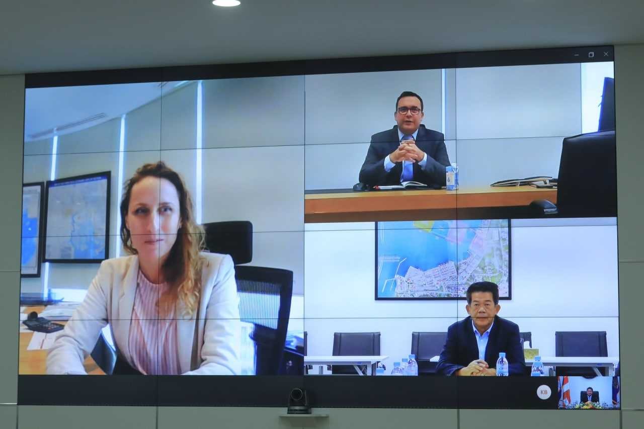 ភ្នំពេញ៖ លោកទេសរដ្ឋមន្ត្រី ស៊ុន ចាន់ថុល រដ្ឋមន្ត្រីក្រសួងសាធារណការ និងដឹកជញ្ជូន នៅថ្ងៃទី១៤ ខែមិថុនា បានជួបពិភាក្សាការងារតាមប្រព័ន្ធវីដេអូពីចម្ងាយជាមួយលោក Laurent Olmeta, នាយកប្រតិបត្តិប្រចាំតំបន់អាស៊ីប៉ាស៊ីហ្វិក នៃក្រុមហ៊ុន CMA CGM។