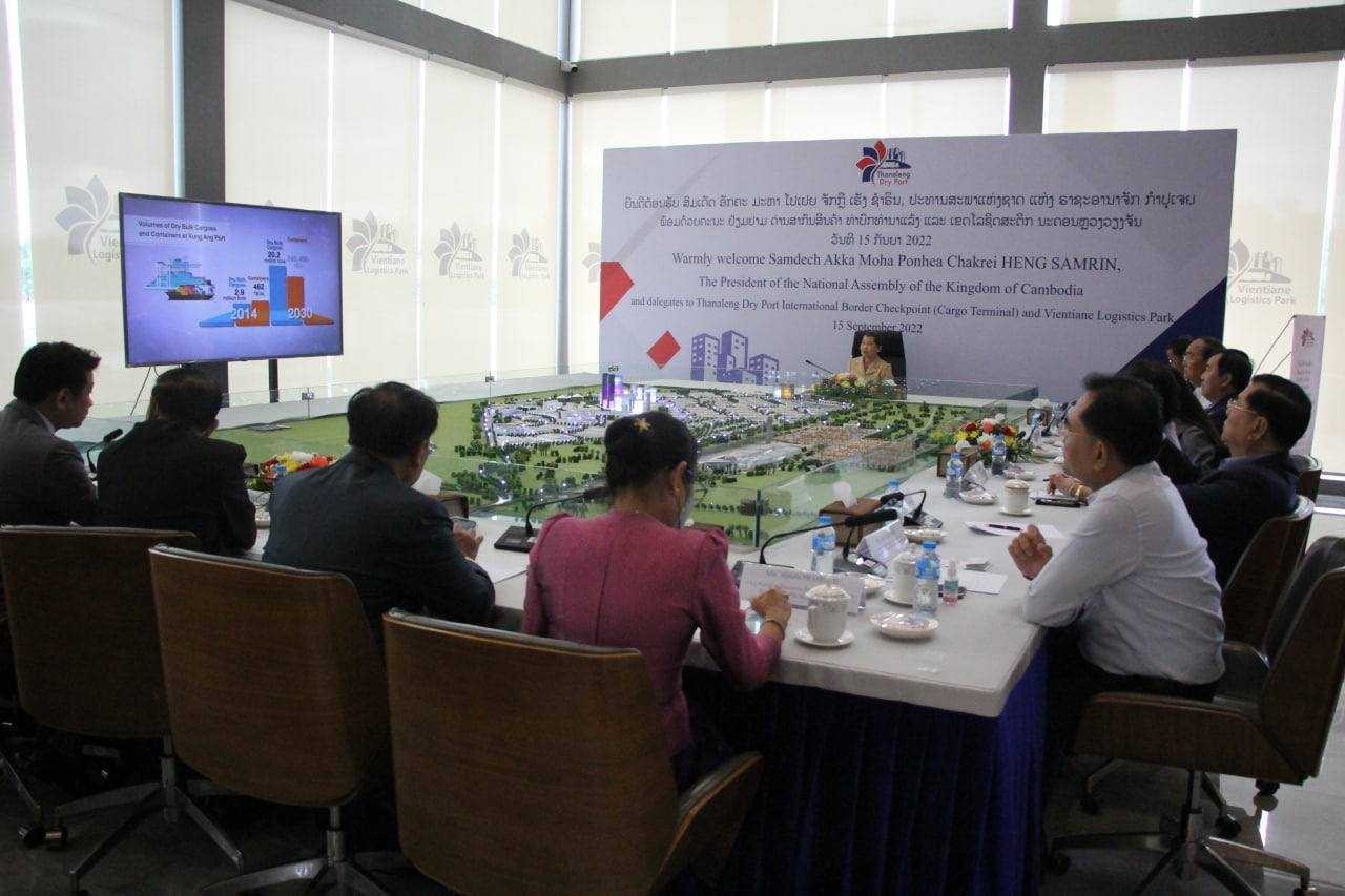 ការអះអាងរបស់អគ្គនាយកក្រុមហ៊ុនកំពង់ផែស្ងួត Veintiane Logistice Park ដែលជាគម្រោងវិនិយោគលើបណ្តាញ ផ្លូវគមនាគមន៍ផ្លូវគោកដ៏ធំមួយរបស់ប្រទេសឡាវនេះ បានជម្រាបជូនលោកស្រីកិត្តិសង្គហបណ្ឌិត ម៉ែន សំអន ឧបនាយករដ្ឋមន្រ្តីរដ្ឋមន្រ្តីក្រសួងទំនាក់ទំនងរដ្ឋសភាព្រឹទ្ធសភា និងអធិការកិច្ចតំណាងសម្តេចអគ្គមហាពញាចក្រី ហេង សំរិន ប្រធានរដ្ឋសភា ដែលបានអញ្ជើញដឹកនាំគណៈប្រតិភូជាន់ខ្ពស់រដ្ឋសភាកម្ពុជាទៅទស្សនកិច្ចកំពង់ផែស្ងួតនេះ នៅប្រទេសឡាវ កាលពីថ្ងៃទី ១៥ខែកញ្ញា ឆ្នាំ ២០២២។