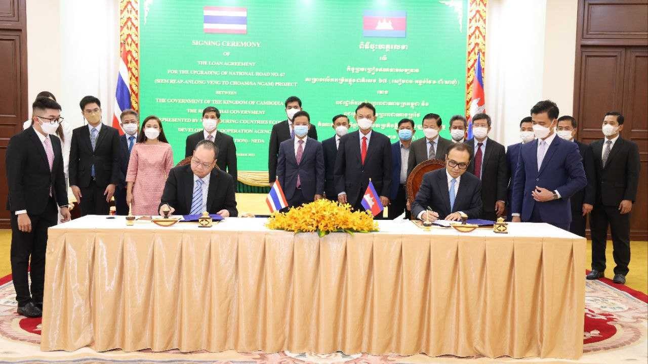 ភ្នំពេញ៖ កម្ពុជា និងថៃ បានចុះហត្ថលេខាលើកិច្ចព្រមព្រៀងឥណទានសម្បទានសម្រាប់គម្រោងលើកកម្រិតផ្លូវជាតិលេខ ៦៧ (សៀមរាប-អន្លង់វែង-ជាំ/សាង៉ាំ) ដែលមានទឹកប្រាក់សរុបចំនួន ៩៨៣លានបាត ត្រូវនឹងប្រមាណ ៣០លានដុល្លារអាមេរិក នៅទីស្តីការក្រសួងសេដ្ឋកិច្ច និងហិរញ្ញវត្ថុ នាព្រឹកថ្ងៃសុក្រទី០៤ ខែវិច្ឆិកា ឆ្នាំ២០២២នេះ។