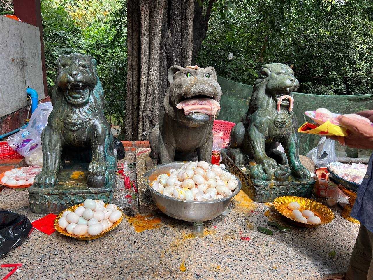 ក្រៅពីវត្ថុមង្គលគ្រឿងកែឆុងនានាដែលមានលក់នៅតាមហាងទាំងឡាយ អ្នកដែលឆុងទាំងឡាយជាពិសេសឆ្នាំរកា គឺរករូបទេវតាទ្រព្យឆៃ ស៊ីងអៀ មកដាក់តាំង និងរូបព្រះកំចាយជិះនាគដើម្បីជួយកាត់ឆុង។