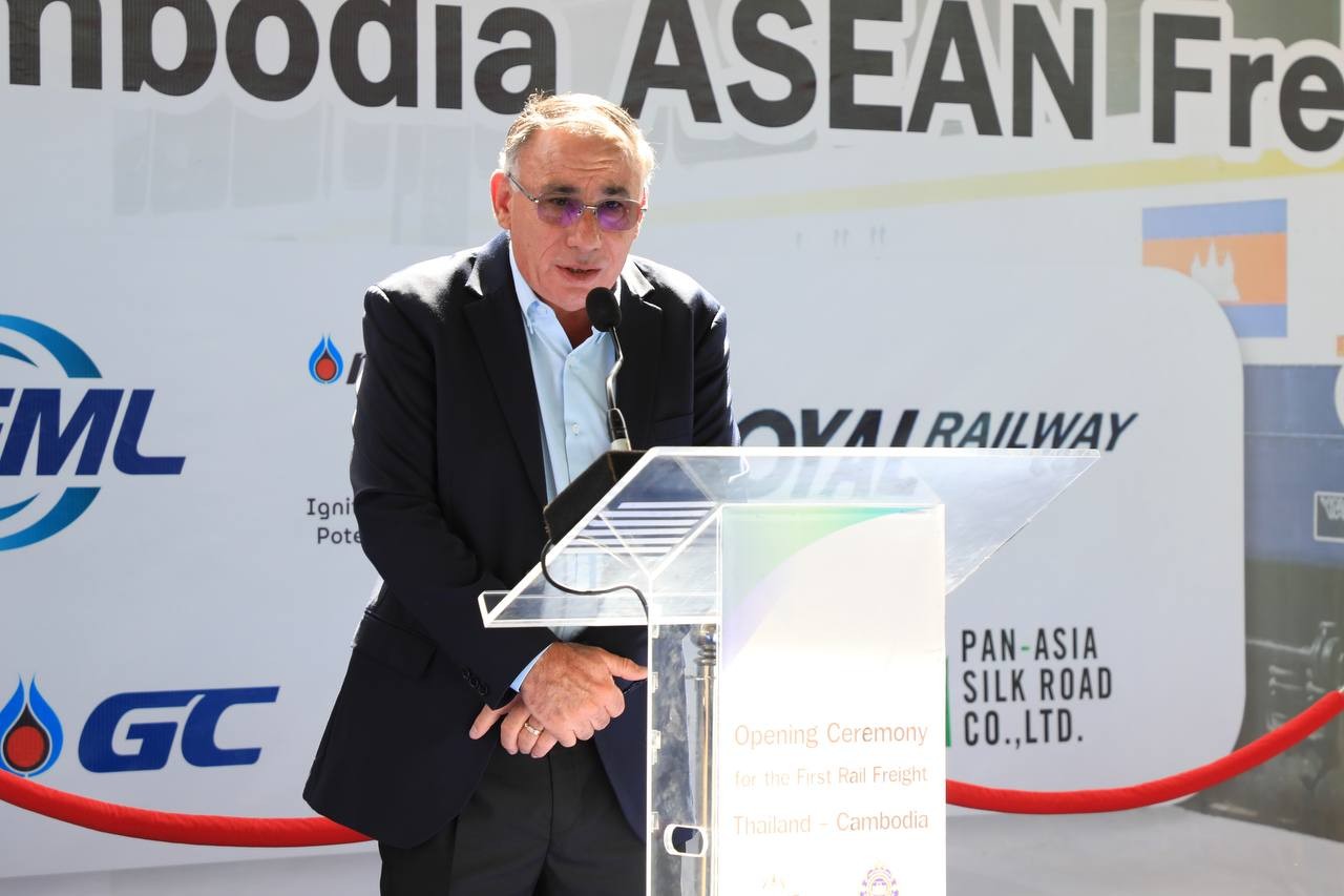 លោកបានបន្តថា នេះជាឱកាសដ៏ល្អសម្រាប់ក្រុមហ៊ុន Global Multimodal Logistics Co., Ltd. (GML) ដែលជាបុត្រសម្ព័ន្ធនៃក្រុមហ៊ុន PTT Public Company Limited ដែលប្រតិបត្តិការអាជីវកម្មសេវាកម្មចម្រុះ និងភស្តុភារកម្ម ជាមួយនឹងបេសកកម្មដើម្បីជំរុញទម្រង់ផ្សេងៗនៃសេវាកម្មដឹកជញ្ជូន ដោយប្រើប្រព័ន្ធផ្លូវដែករបស់ប្រទេសថៃជំនួសវិញ ដែលស្របតាមយុទ្ធសាស្ត្រអភិវឌ្ឍន៍ខ្សែច្រវ៉ាក់ផ្គត់ផ្គង់ និងភស្តុភារក្រោមយុទ្ធសាស្ត្រជាតិ ២០ឆ្នាំ ដែលនឹងរួមកម្លាំងជា មួយរដ្ឋាភិបាល និងវិស័យឯកជនក្នុងប្រទេសថៃ និងកម្ពុជា។