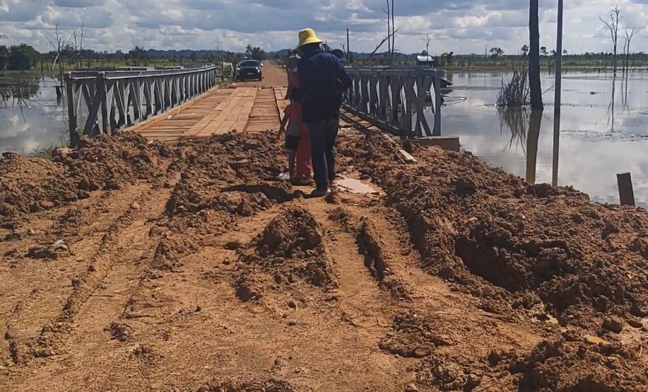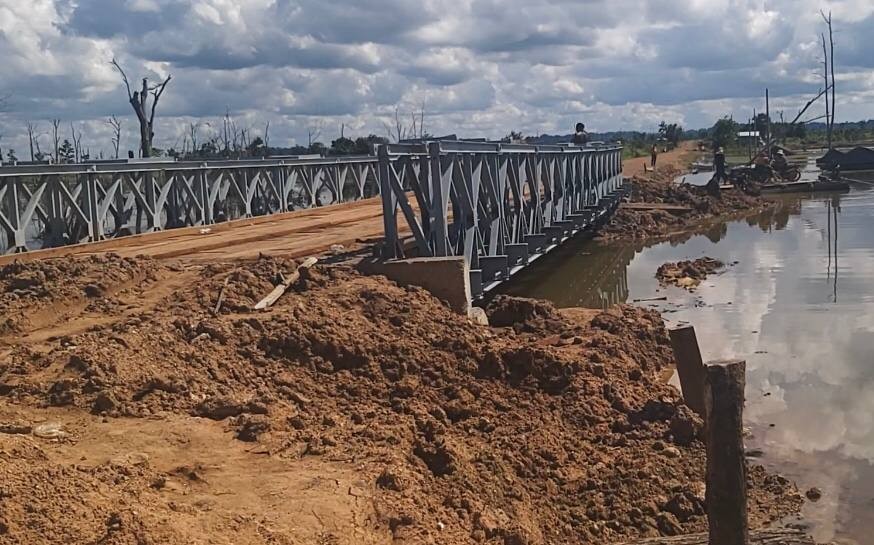 អាជ្ញាធរស្រុកសេសានសម្រុកធ្វើស្ពានបាឡេរួចរាល់ ដើម្បីមិនឱ្យរាំងស្ទះដល់ការធ្វើដំណើររបស់ប្រជាពលរដ្ឋ ខណៈផ្លូវនេះត្រូវបានទឹកជំនន់កាត់ផ្តាច់