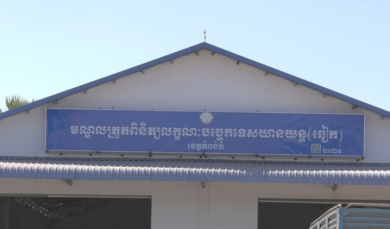 កំពង់ធំ៖ ក្រសួងសាធារណការ និងដឹកជញ្ជូន សហការជាមួយក្រុមហ៊ុន CMVIC បានរៀបចំដំណើរការម៉ាស៊ីនត្រួតពិនិត្យលក្ខណៈបច្ចេកទេសយានយន្ត នៅក្នុងខេត្តកំពង់ធំ ដើម្បីត្រួតពិនិត្យបច្ចេកទេសរថយន្ត (ឆៀក) ដើម្បីសុវត្ថិភាពក្នុងការធ្វើដំណើរ។