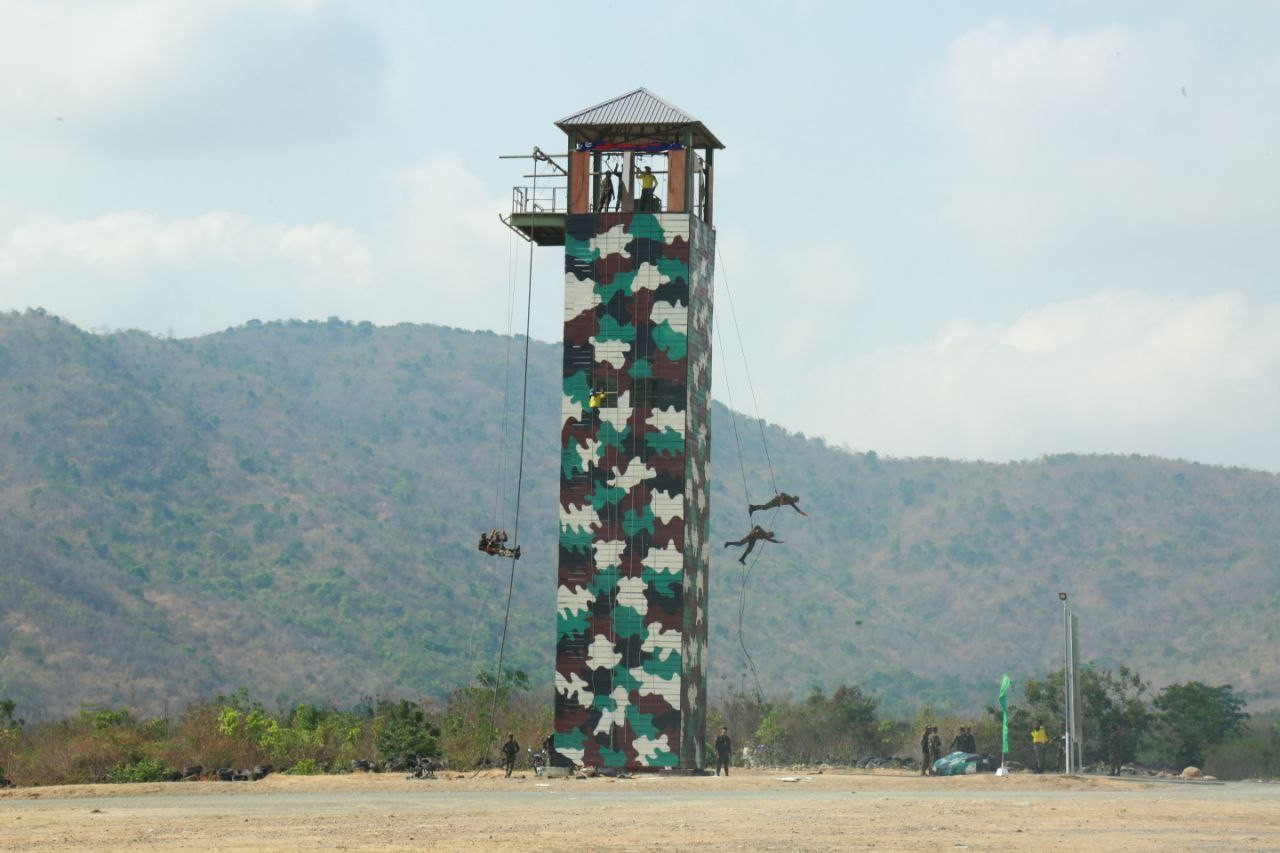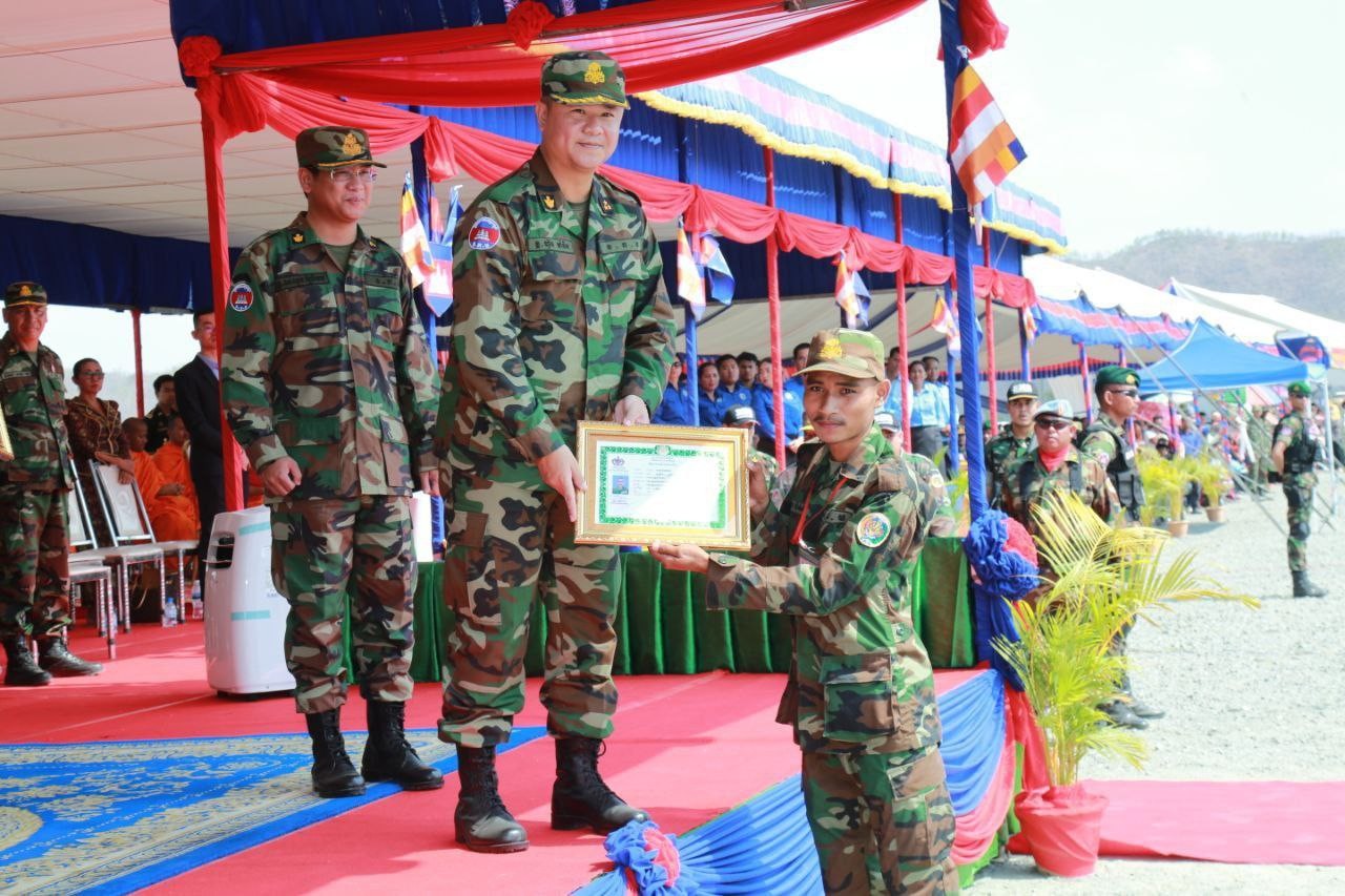 សូមជម្រាបថា ក្រោមការដឹកនាំរបស់ នាយឧត្តមសេនីយ៍ កិត្តិសង្គហបណ្ឌិត ហ៊ីង ប៊ុនហៀង និងនាយឧត្តមសេនីយ៍ ហ៊ុយ ពិសិដ្ឋ បានដឹកនាំកសាងមជ្ឈមណ្ឌលហ្វឹកហ្វឺន គិតមកដល់បច្ចុប្បន្នមានអគារសរុបចំនួន ៥៨ខ្នង បណ្ណាល័យចំនួន ១ ស្ថានីយប្រេងឥន្ធនៈ១ ស្ថានីយឧបសគ្គទីខ្ពស់១កន្លែង សំណង់ខ្ពស់សម្រាប់ហ្វឹកហាត់បាញ់អាវុធរយៈចម្ងាយឆ្ងាយ ១កន្លែង ឧបសគ្គសម្រាប់ពង្រឹង កាយសម្បទា ២៥ឧបសគ្គ អណ្តូងទឹក ស៊ីទែនទឹក ២១កន្លែង និងអគារមន្ទីរពេទ្យថ្មី ចំនួន ១ខ្នង កម្ពស់ពីរជាន់ ដែលទើបកាត់ខ្សែប្តូរដាក់ឱ្យប្រើប្រាស់នាឱកាសនេះ រួមជាមួយអគារទីបញ្ជាការថ្មី១ខ្នង កម្ពស់២ជាន់ អគារការិយាល័យ អមទីបញ្ជាការ កំពុងសាងសង់ ជាអំណោយដ៏ថ្លៃថ្លារបស់សម្តេចតេជោ និងសម្តេចកិត្តិព្រឹទ្ធបណ្ឌិត សម្តេចមហាបវរធិបតី ហ៊ុន ម៉ាណែត នាយករដ្ឋមន្ត្រី និងលោកជំទាវបណ្ឌិត និងបន្តធ្វើផ្លូវចាក់កៅស៊ូ ក្នុងមជ្ឈមណ្ឌលហ្វឹកហ្វឺនទាំងមូល។