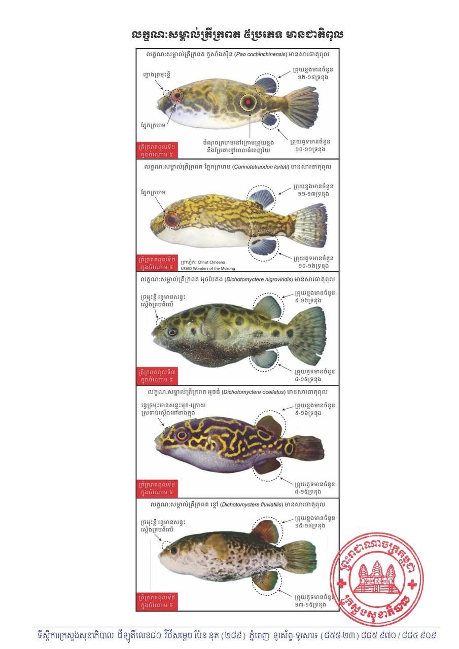 ជាមួយគ្នានេះ ក្រសួងសុខាភិបាលសូមក្រើនរំលឹក ដើម្បីចៀសវាងបាននូវការពុលត្រីក្រពត បង្ក ជាបញ្ហាសុខភាពដែលអាចធ្វើឱ្យបាត់បង់ជីវិត សូមបងប្អូនប្រជាពលរដ្ឋ កុំបរិភោគត្រីក្រពតដែលមាន ជាតិពុល ពីព្រោះជាតិពុលនៅក្នុងខ្លួនត្រី អាចបណ្តាលឱ្យមានជំងឺធ្ងន់ធ្ងរ ឬស្លាប់។ ជាតិពុលនៅក្នុងខ្លួន ត្រីក្រពតមិនអាចកំចាត់ចោលបានទេ ទោះបីជាបានចំអិន ឬដាក់ឱ្យកកក៏ដោយ។