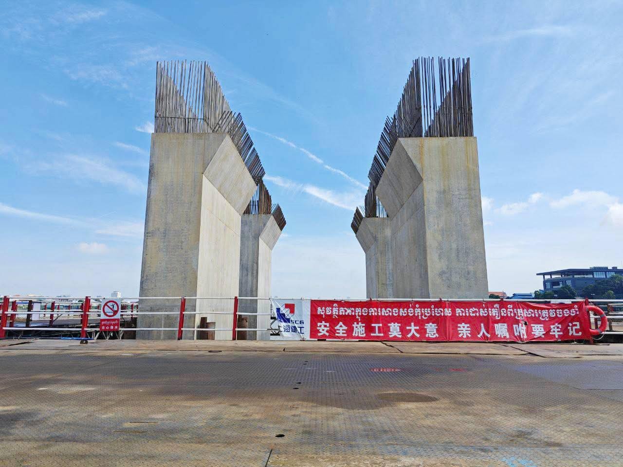 បច្ចុប្បន្នការងារសាងសង់ស្ពានផ្នែកខាងកើត សម្រេចបានផ្នែកគ្រឹះស្ពានសម្រេចបានប្រមាណ ៥៥% ក្នុងនោះបានចាក់បេតុងសសរគ្រឹះចំនួន ១០៧ដើម ក្នុងចំណោម ១៥៦ដើម សាងសង់ជើងតាងបាន ៦ជើងតាង ក្នុងចំណោម ២០ជើងតាង និងធ្នឹមភ្ជាប់ក្រោមបានចំនួន ៨ធ្នឹម ក្នុងចំណោម ១២ធ្នឹម។