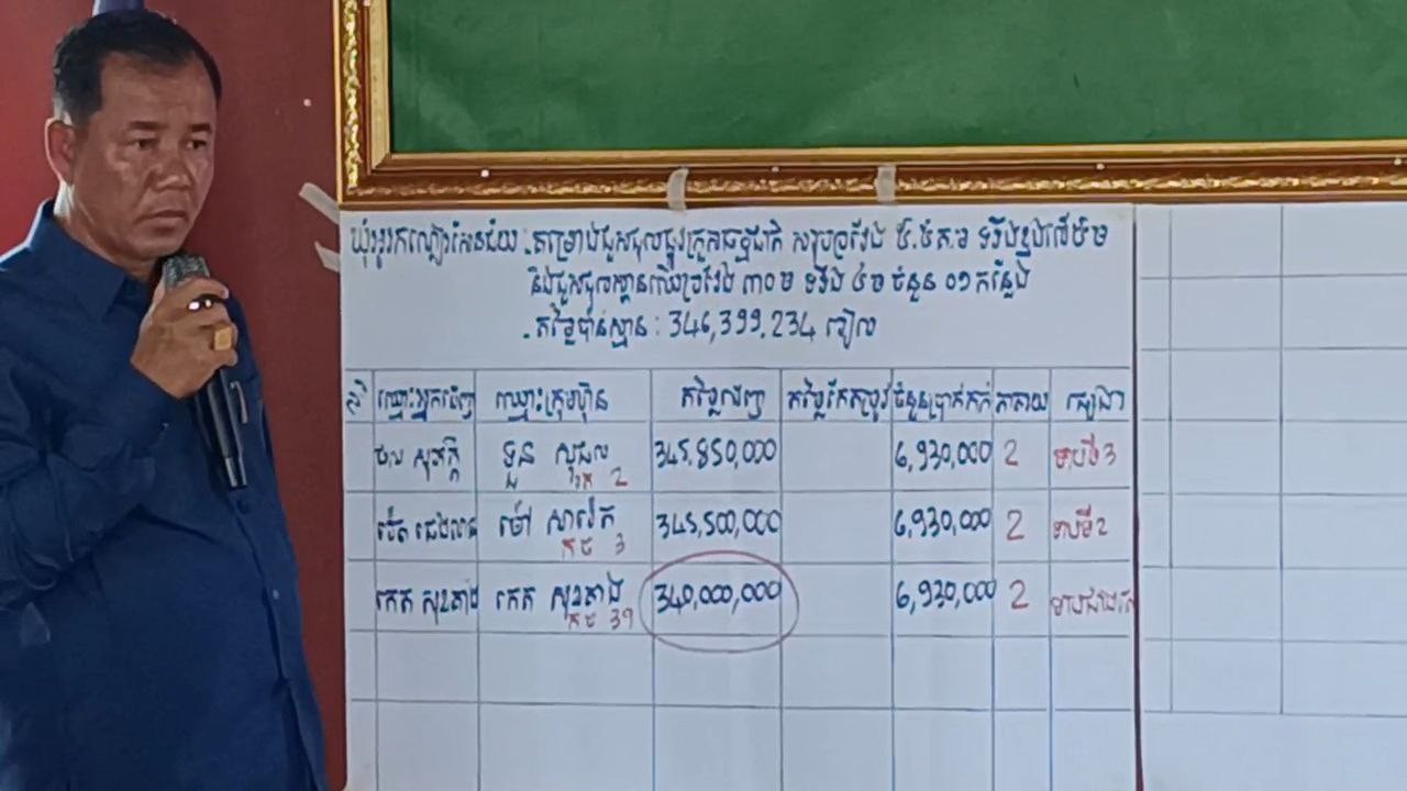 ក្នុងដំណើរការនេះ ក្រុមហ៊ុន ដែលចូលរួមដេញថ្លៃ មានចំនួន ៣ គឺ ទី១ មានឈ្មោះ ទួន សុផល បានដាក់សំណើរដេញថ្លៃចំនួនទឹកប្រាក់ ៣៤៥ ៨៥០ ០០០រៀល និងក្រុមហ៊ុនទី២ មានឈ្មោះ ម៉ៅ សារ៉េត បានដាក់សំណើដេញថ្លៃចំនួនទឹកប្រាក់ ៣៤៥ ៥00 000រៀល និងក្រុមហ៊ុនទី៣ ដែលឈ្នះក្នុងការដេញថ្លៃ មានឈ្មោះ កេត សុខគាង បានដាក់សំណើដេញថ្លៃចំនួនទឹកប្រាក់ ៣៤០,000,000រៀល។
