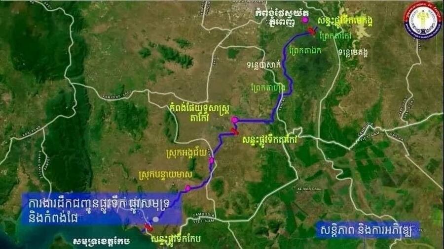 ផ្លូវទឹកប្រវត្តិសាស្រ្តមួយខ្សែនេះឆ្លងកាត់ខេត្តចំនួន៤ រួមមាន៖ ខេត្តកណ្តាល ខេត្តតាកែវ ខេត្តកំពត និងខេត្តកែប ហើយត្រូវបានរចនាឡើងសម្រាប់នាវាដែលមានទម្ងន់ផ្ទុករហូតដល់ ៣.០០០DWTទៅ-មក និងចៀសគ្នាបានដោយសុវត្ថិភាព។