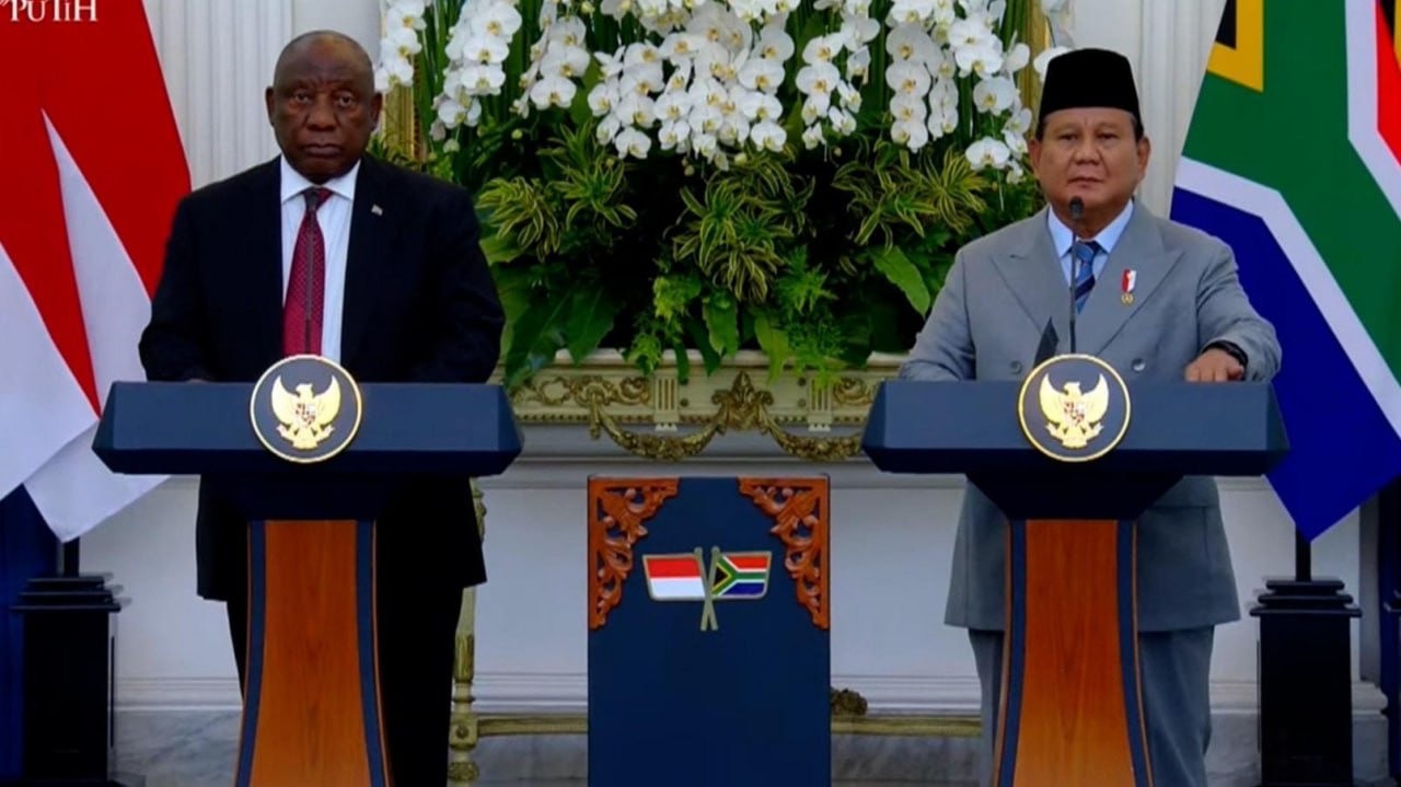 ហ្សាកាតា, ឥណ្ឌូណេស៊ី៖ ប្រធានាធិបតីអាហ្វ្រិកខាងត្បូង លោក ស៊ីរ៉ល រ៉ាម៉ាហ្វូសា (Cyril Ramaphosa) បានជួបជាមួយប្រធានាធិបតីឥណ្ឌូណេស៊ី លោក ប្រាបូវ៉ូ ស៊ូប៊ីអាន់តូ (Prabowo Subianto) ដើម្បីពិភាក្សាអំពីការពង្រឹងកិច្ចសហប្រតិបត្តិការសេដ្ឋកិច្ចរវាងប្រទេសទាំងពីរ ។