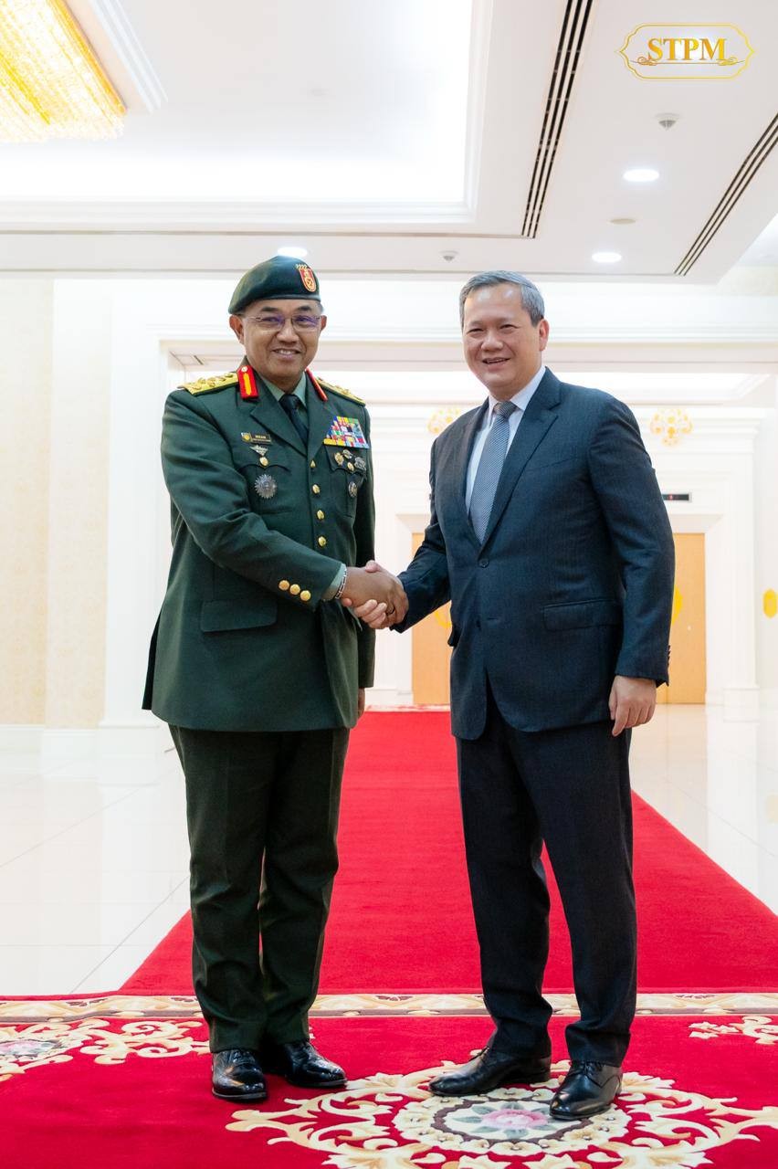 សម្តេចបវរធិបតី បានសម្តែង នូវការស្វាគមន៍យ៉ាងកក់ក្ដៅចំពោះ ឯកឧត្តមអគ្គមេបញ្ជាការកងទ័ពម៉ាឡេស៊ី និងគណៈប្រតិភូ និងបានវាយតម្លៃខ្ពស់ចំពោះតួនាទីរបស់ប្រទេសម៉ាឡេស៊ី ជាពិសេស តួនាទីដ៏សំខាន់របស់ឯកឧត្ដមនាយករដ្ឋមន្រ្តី Anwar Ibrahim ដែលបានចូលរួមចំណែកជួយសម្របសម្រួលឱ្យមានបទឈប់បាញ់ កាលពីថ្ងៃទី២៨ ខែកក្កដា ឆ្នាំ២០២៥ និង ការឈានទៅសម្រេចបាននូវសេចក្ដីថ្លែងការណ៍រួម កម្ពុជា-ថៃ ដែលបានចុះហត្ថលេខានៅទីក្រុងគូឡាឡាំពួ ប្រទេសម៉ាឡេស៊ី កាលពីថ្ងៃទី២៦ ខែតុលា ឆ្នាំ២០២៥ ក៏ដូចជាអរគុណដល់តួនាទីដ៏សកម្មរបស់ ឯកឧត្តមអគ្គមេបញ្ជាការ ក្នុងការដឹកនាំ និង សម្របសម្រួល ក្រុមអ្នកសង្កេតការណ៍អាស៊ាន ស្របតាម បទឈប់បាញ់កម្ពុជា-ថៃ, ស្មារតីនៃកិច្ចប្រជុំគណ:កម្មាធិការព្រំដែនទូទៅកម្ពុជា-ថៃ និងខ្លឹមសារនៃសេចក្ដីថ្លែងការណ៍រួម កម្ពុជា-ថៃ ដែលបានចុះហត្ថលេខានៅទីក្រុងគូឡាឡាំពួ។