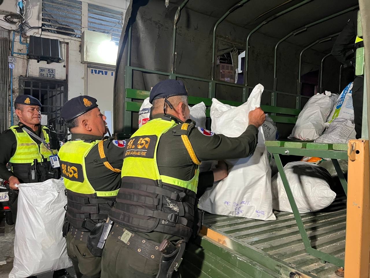 កម្លាំងអាវុធហត្ថ ធ្វើការឡោមព័ទ្ធទីតាំងផ្ទះមួយកន្លែង ដកហូតបានបារីអេឡិចត្រូនិករាប់ពាន់ដើម