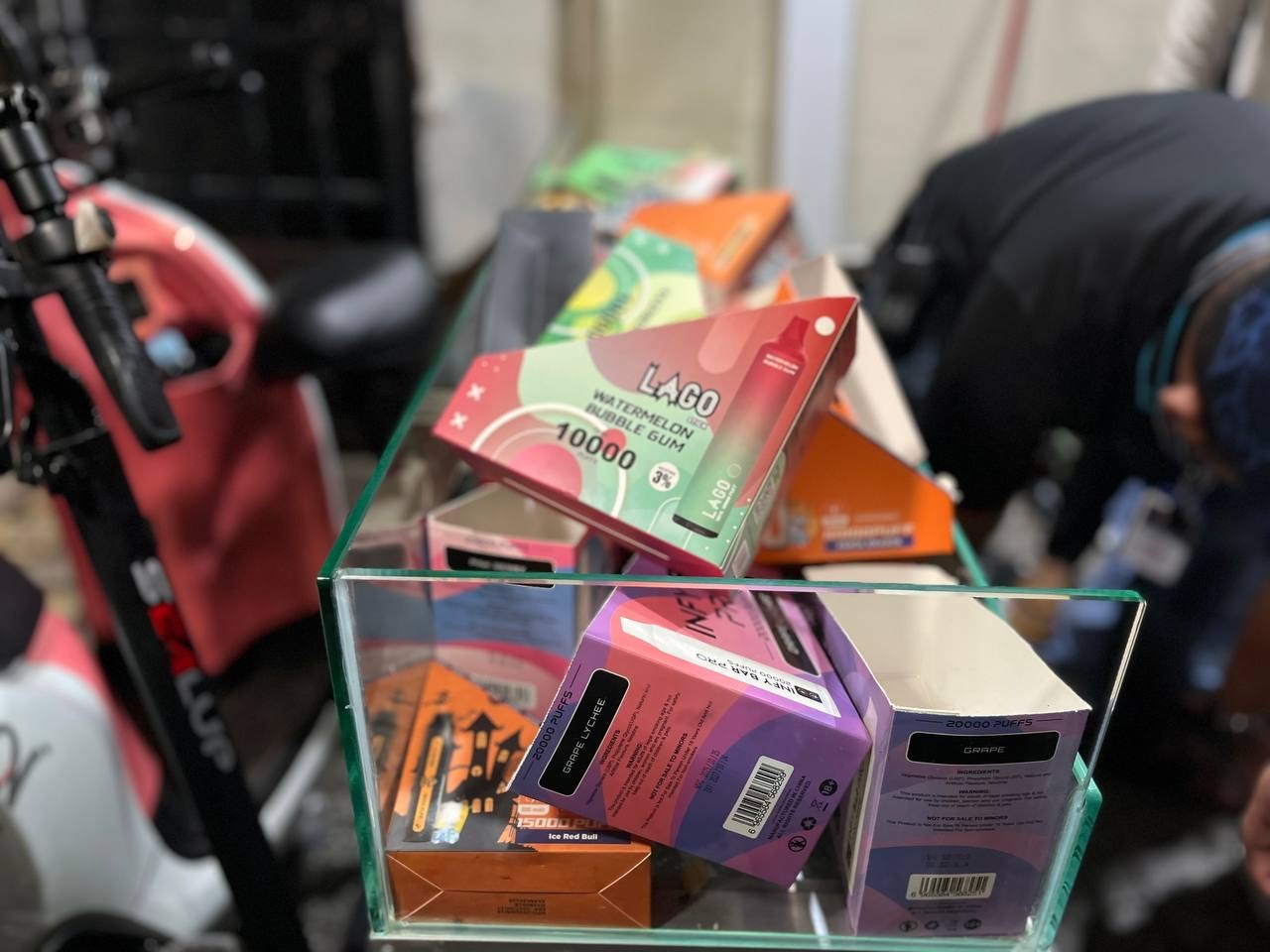 ក្នុងការចុះបង្ក្រាបនេះ គេឃើញមានបារីអេឡិចត្រូនិកជាច្រើនប្រភេទ ជាច្រើនប្រអប់ ព្រមទាំងមានរសជាតិ និងក្លិនខុសៗគ្នា រួមទាំងឧបករណ៍ប្រើប្រាស់សម្រាប់បង្ហុយផ្សែងផ្សេងៗទៀតរាប់ពាន់ដើម ដែលជាទង្វើរខុសច្បាប់ និងបង្កផលប៉ះពាល់ដល់សុខភាពរបស់អ្នកប្រើប្រាស់។