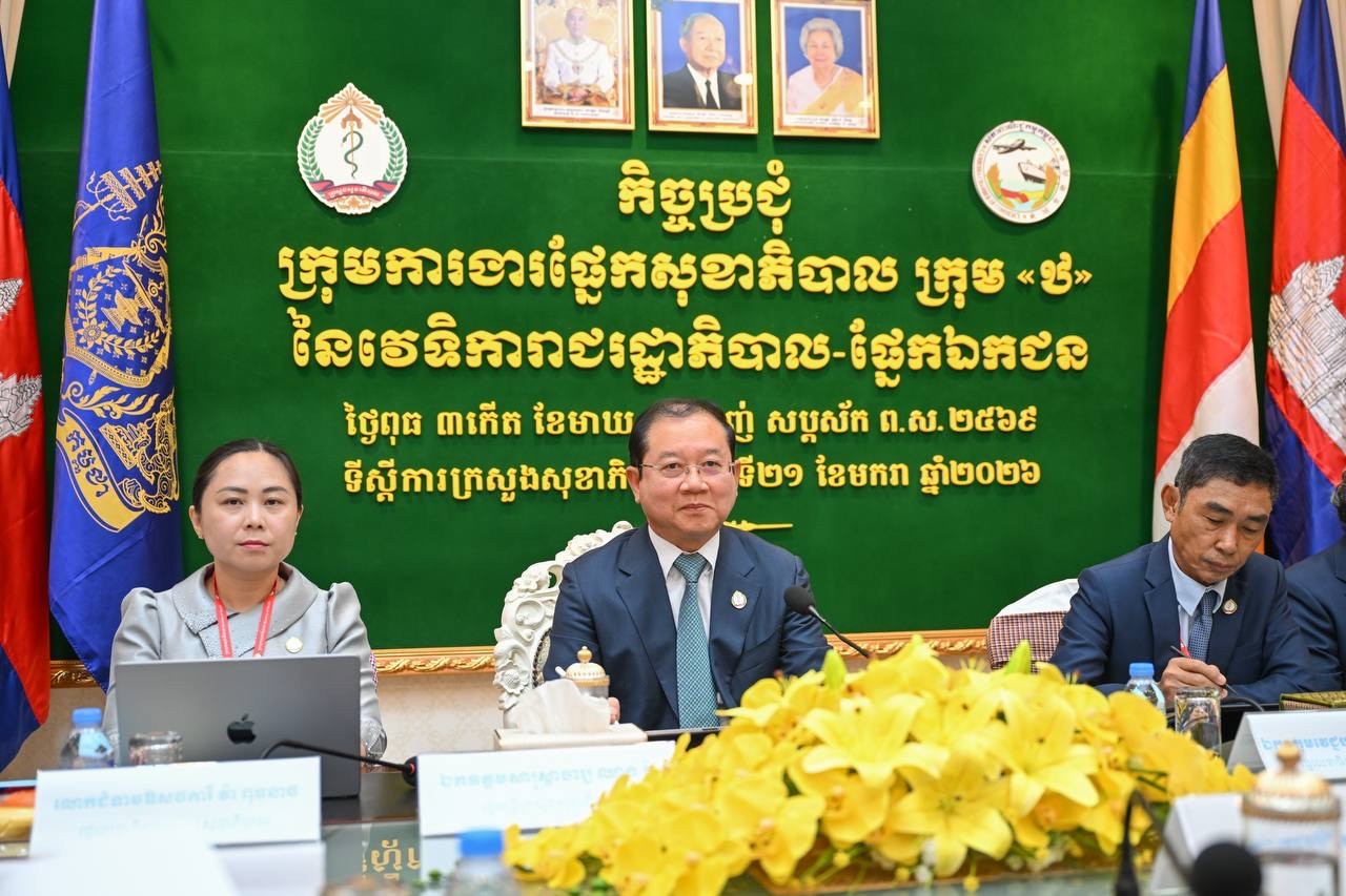 ភ្នំពេញ៖ លោកសាស្រ្តាចារ្យ ឈាង រ៉ា រដ្ឋមន្ត្រីក្រសួងសុខាភិបាល និងជាប្រធានក្រុមការងារផ្នែកសុខាភិបាល នៅព្រឹកថ្ងៃទី២១ ខែមករា ឆ្នាំ២០២៦ នៅទីស្តីការក្រសួង បានដឹកនាំកិច្ចប្រជុំការងារផ្នែកសុខាភិបាល ក្រុម «ឋ» នៃវេទិការាជរដ្ឋាភិបាល-ផ្នែកឯកជន ដើម្បីពិភាក្សាលើបញ្ហា និងដំណោះស្រាយទាំងឡាយ ពាក់ព័ន្ធវិស័យសុខាភិបាល សំណូមពរនានាពីផ្នែកឯកជន ចំពោះវិស័យសុខាភិបាល។