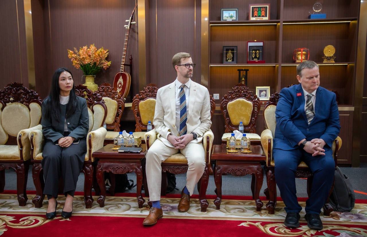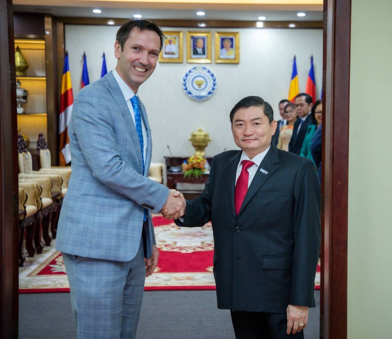 ភ្នំពេញ៖ លោក ហេង សួរ រដ្ឋមន្ត្រីក្រសួងការងារ និងបណ្ដុះបណ្ដាលវិជ្ជាជីវៈ បានជួបពិភាក្សាការងារជាមួយលោក ដូមីនិក វីល្លៀម (Dominic Williams) ឯកអគ្គរាជទូតចក្រភពអង់គ្លេស ប្រចាំកម្ពុជា និងបានចុះអនុស្សរណៈនៃការយោគយល់គ្នា (MoU) ជាមួយលោក Jonathan Ledger អ្នកជំនាញអន្តរជាតិក្នុងវិស័យ TVET និងគោលនយោបាយកម្លាំងពលកម្ម តំណាងឱ្យភាពជាដៃគូជំនាញរបស់ចក្រភពអង់គ្លេស (UK Skills Partnership-UKSP)។