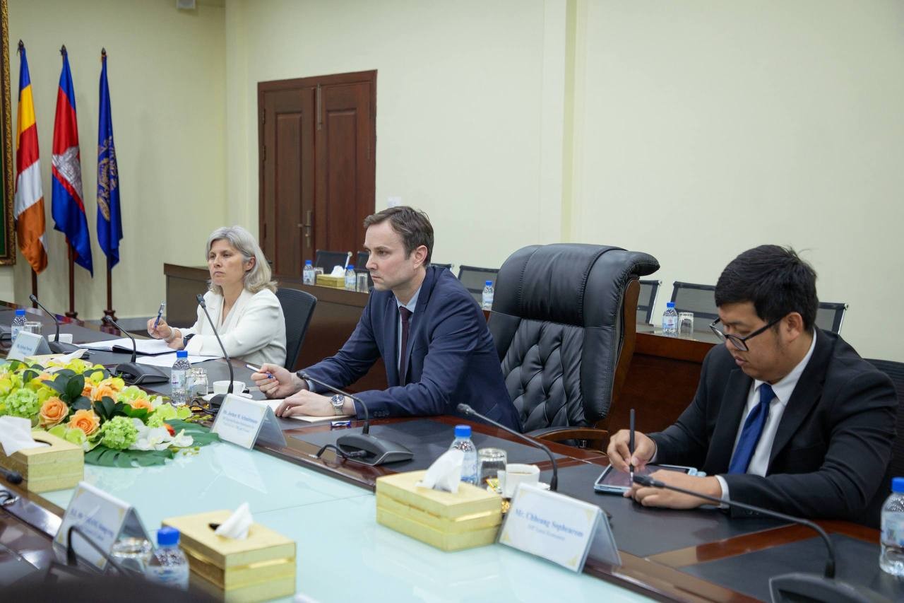 ភ្នំពេញ៖ លោក ហេង សួរ រដ្ឋមន្ត្រីក្រសួងការងារ និងបណ្ដុះបណ្ដាលវិជ្ជាជីវៈ បានជួបពិភាក្សាការងារជាមួយលោក Jochen M. Schmittmann តំណាងប្រចាំតំបន់របស់មូលនិធិរូបិយវត្ថុអន្តរជាតិ (IMF) សម្រាប់កម្ពុជា ឡាវ និងវៀតណាម នាថ្ងៃទី៩ ខែមីនា ឆ្នាំ២០២៦ ដើម្បីធ្វើបច្ចុប្បន្នភាពការងារ ផ្លាស់ប្តូរយោបល់លើការស្រូបទាញកម្លាំងពលកម្ម ការអភិវឌ្ឍជំនាញ ជាពិសេស ការធ្វើសមាហរណកម្មពលករទេសន្តរប្រវេសន៍មកពីប្រទេសថៃ។