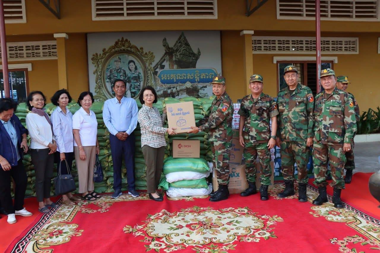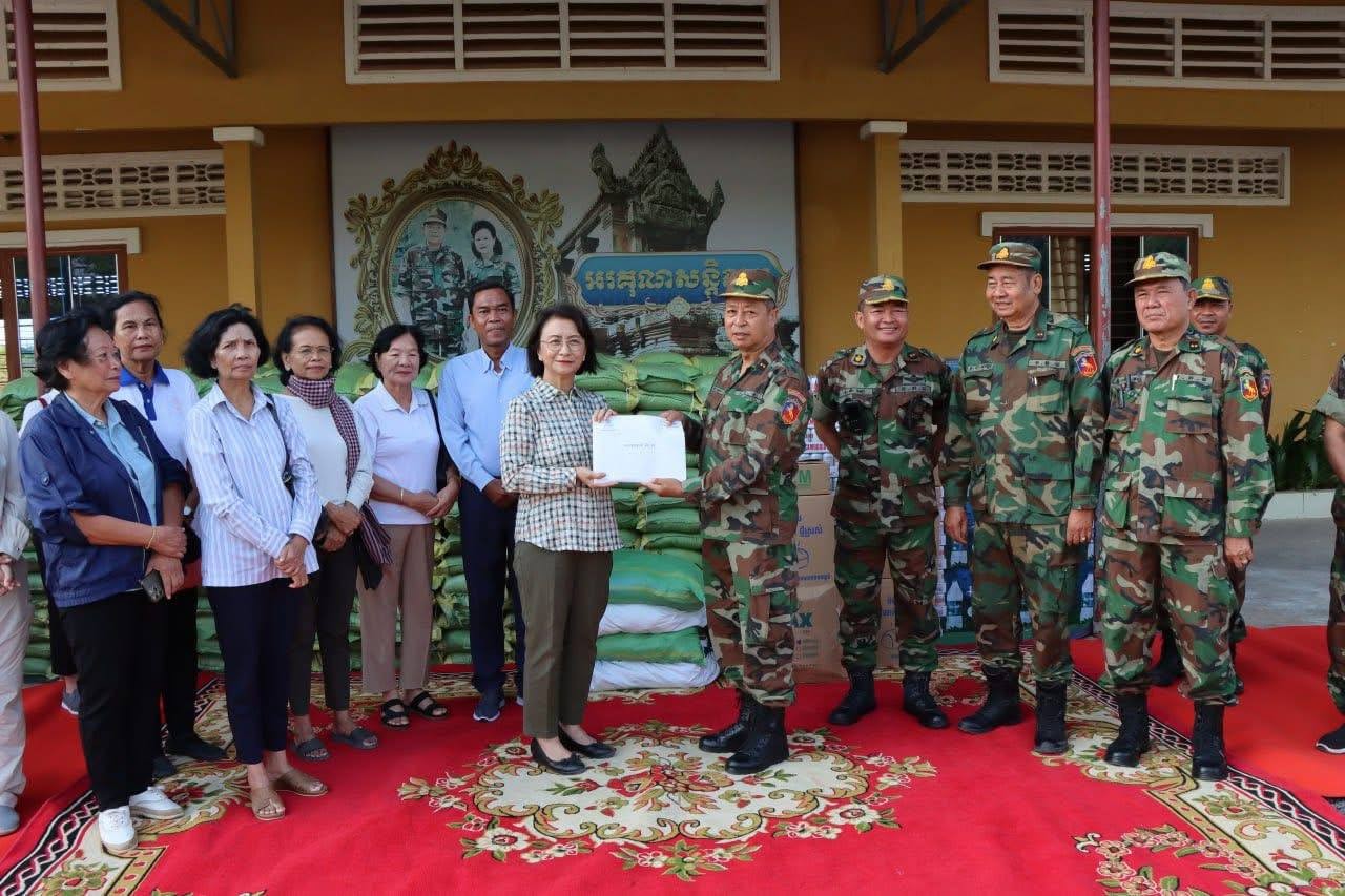 ក្នុងឱកាសនោះដែរ លោកស្រីកិត្តិបណ្ឌិត អ៉ឹង កន្ថាផាវី ព្រមទាំងក្រុមការងារ បាននាំយកអំណោយ ថវិកា និងគ្រឿងបរិភោគឧបភោគមួយចំនួនធំ មកចែកជូនដល់នាយទាហាន និងពលទាហាន យុទ្ធជន យុទ្ធនារីផងដែរ៕
