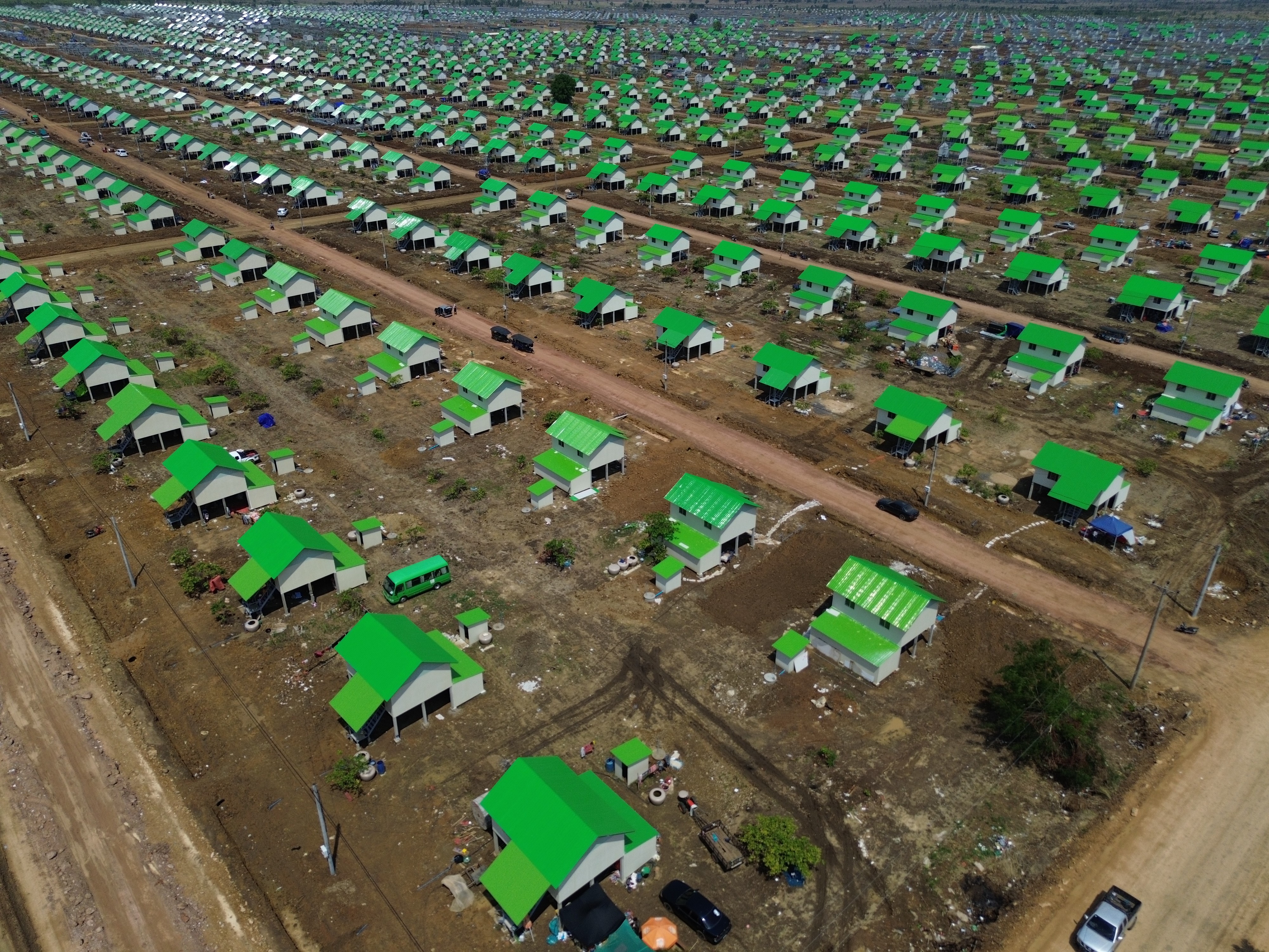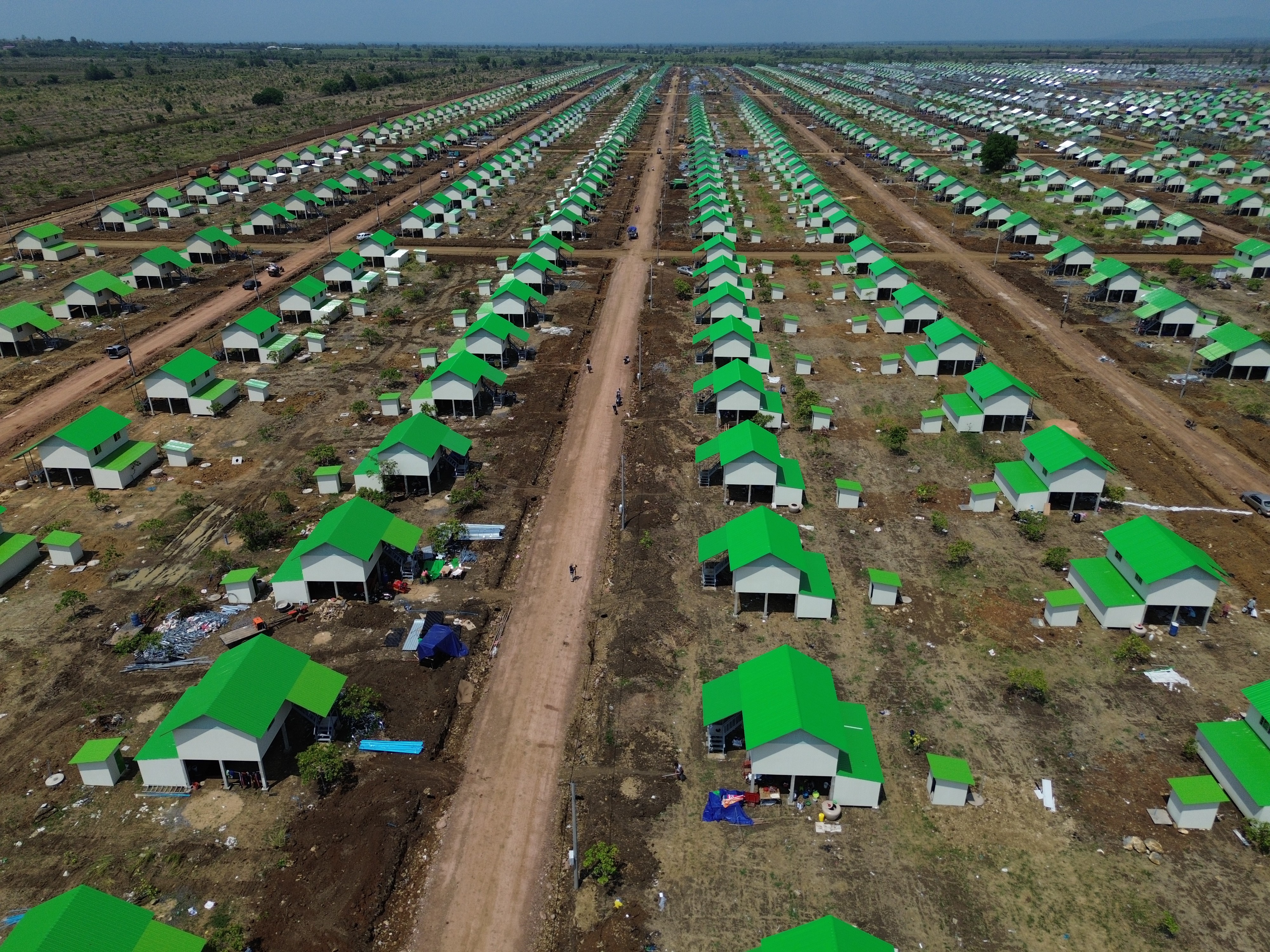 លោក ឃ្លោក នួយ បានអះអាងថា រាជរដ្ឋាភិបាល បានសាងសង់ជម្រកបណ្ដោះអាសន្នប្រមាណ ៣ពាន់ខ្នង នៅក្នុងភូមិស្លក្រាម ឃុំស្លក្រាម ស្រុកស្វាយចេក ដោយភ្ជាប់មកនូវហេដ្ឋារចនាសម្ព័ន្ធតបណ្ដាញទឹកស្អាត អគ្គិសនីចូលដល់ក្នុងខ្នងផ្ទះ ផ្លូវខ្វាត់ខ្វែង និងមានផ្លូវធំចាក់បេតុង ដាក់លូ សាងសង់សាលារៀន ចាប់ពីបឋមសិក្សា ដល់វិទ្យាល័យ និងមន្ទីរពេទ្យ និងរៀបចំគម្រោងផ្សេងៗគាំទ្រដល់ការរស់នៅចិញ្ចឹមជីវិតពលរដ្ឋ ដែលរៀបចំជាលក្ខណៈទីប្រជុំជន។