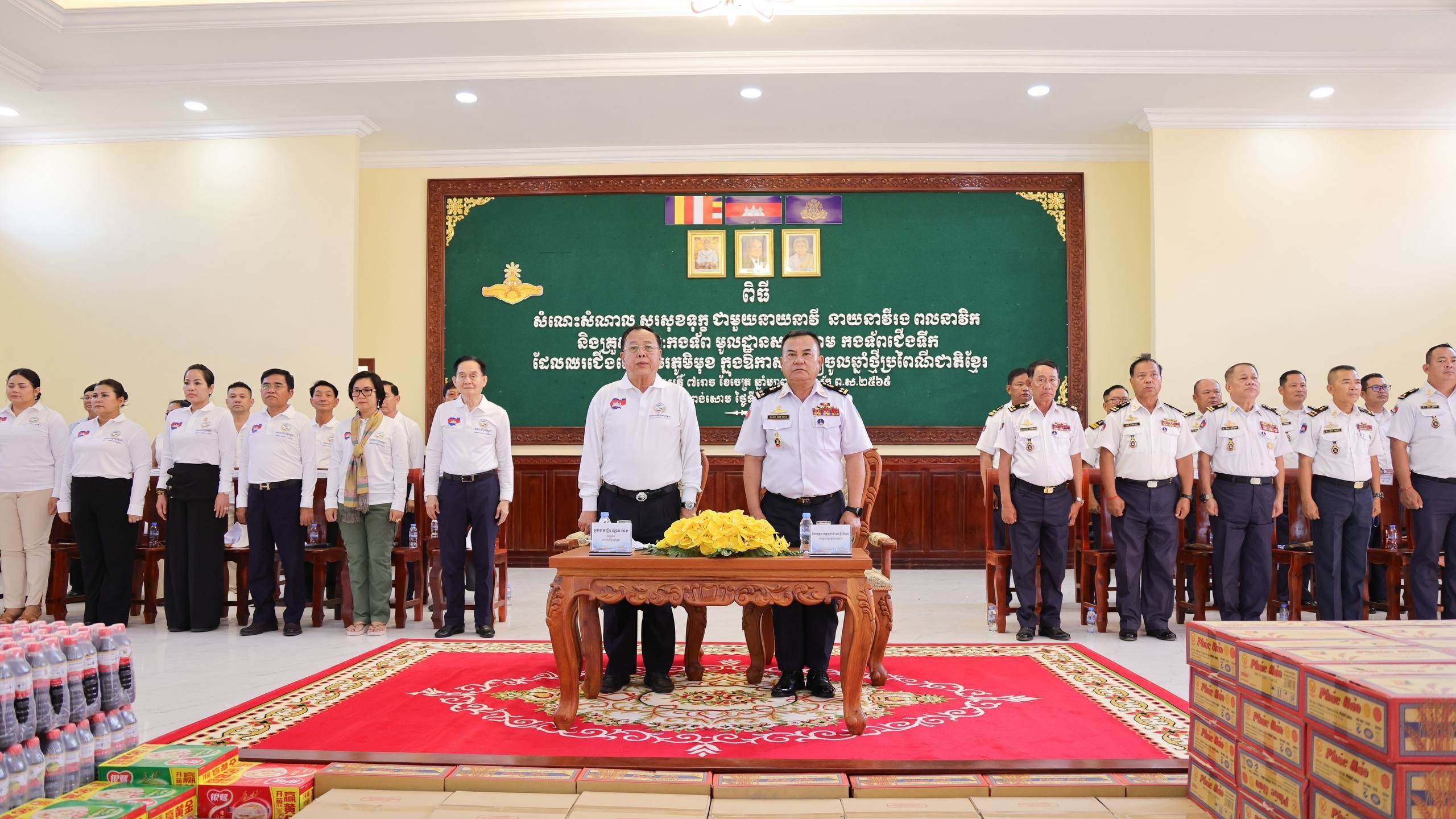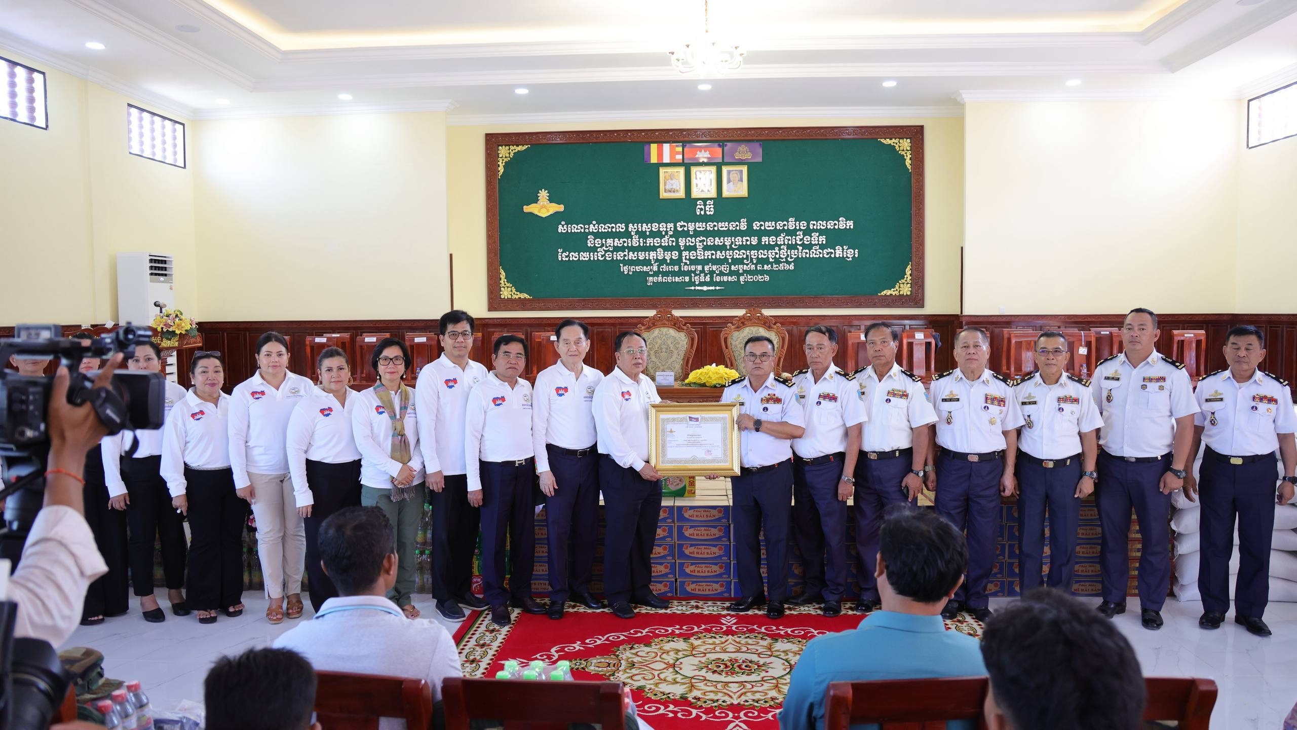 ព្រះសីហនុ៖ នាឱកាសបុណ្យចូលឆ្នាំថ្មី ប្រពៃណីជាតិខ្មែរ ឆ្នាំមមី ដែលឈានចូលមកដល់នាពេលខាងមុខនេះ អ្នកឧកញ៉ា គិត ម៉េង ប្រធានសភាពាណិជ្ជកម្មកម្ពុជា និងជាប្រធានក្រុមប្រឹក្សាពិគ្រោះយោបល់ធុរកិច្ចអាស៊ានសម្រាប់កម្ពុជា បានចាត់ឲ្យអ្នកឧកញ៉ា ឡាវ កាង អនុប្រធានសភាពាណិជ្ជកម្មកម្ពុជា ដឹកនាំក្រុមការងារ មូលនិធិសភាពាណិជ្ជកម្មកម្ពុជា ដើម្បីយកអំណោយរបស់មហាគ្រួសារសភាពាណិជ្ជកម្មកម្ពុជា និងសប្បុរសជន ដែលបានបរិច្ចាគតាមរយៈមូលនិធិសភាពាណិជ្ជកម្មកម្ពុជា ជូនដល់វីរៈកងទ័ព តាមរយៈឧត្តមនាវីទោ ម៉ី ឌីណា មេបញ្ជាការមូលដ្ឋាន សមុទ្ររាម នាថ្ងៃទី៩ ខែមេសា ឆ្នាំ២០២៦។