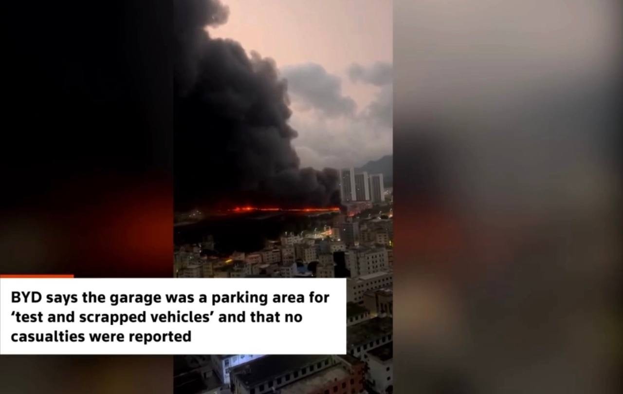 ចិន៖ ក្រុមហ៊ុនផលិតឡានអគ្គិសនីលំដាប់ពិភពលោក BYD បានជួបប្រទះនូវហេតុការណ៍អគ្គិភ័យឆាបឆេះយ៉ាងខ្លាំងនៅក្នុងចំណតឡាននៃសួនឧស្សាហកម្មរបស់ខ្លួន នាទីក្រុងសិនជិន កាលពីព្រឹកថ្ងៃទី១៤ ខែមេសា។ ទោះបីជាអណ្ដាតភ្លើងមើលទៅគួរឱ្យភ័យខ្លាច និងមានផ្សែងខ្មៅងងឹតក៏ដោយ ប៉ុន្តែក្រុមហ៊ុនបញ្ជាក់ថា មិនមានអ្នកណាម្នាក់រងរបួសក្នុងហេតុការណ៍នេះឡើយ ខណៈទីកន្លែងកើតហេតុ គឺជាកន្លែងទុកសម្រាប់តែឡានសាកល្បង និងឡានចាស់ៗដែលត្រូវបោះចោលប៉ុណ្ណោះ ។