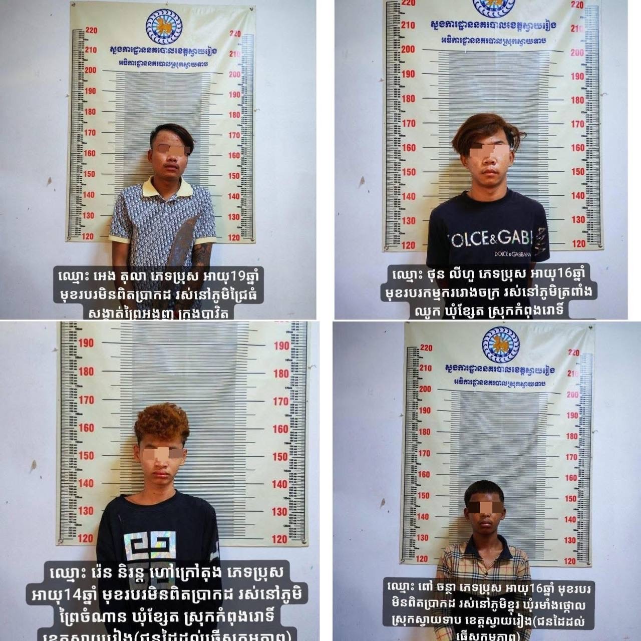 ចាប់ខ្លួនជនសង្ស័យ ៤នាក់ បញ្ជូនទៅតុលាកាខេត្តស្វាយរៀង ពាក់ព័ន្ធរណីកាប់ប្លន់យកម៉ូតូ