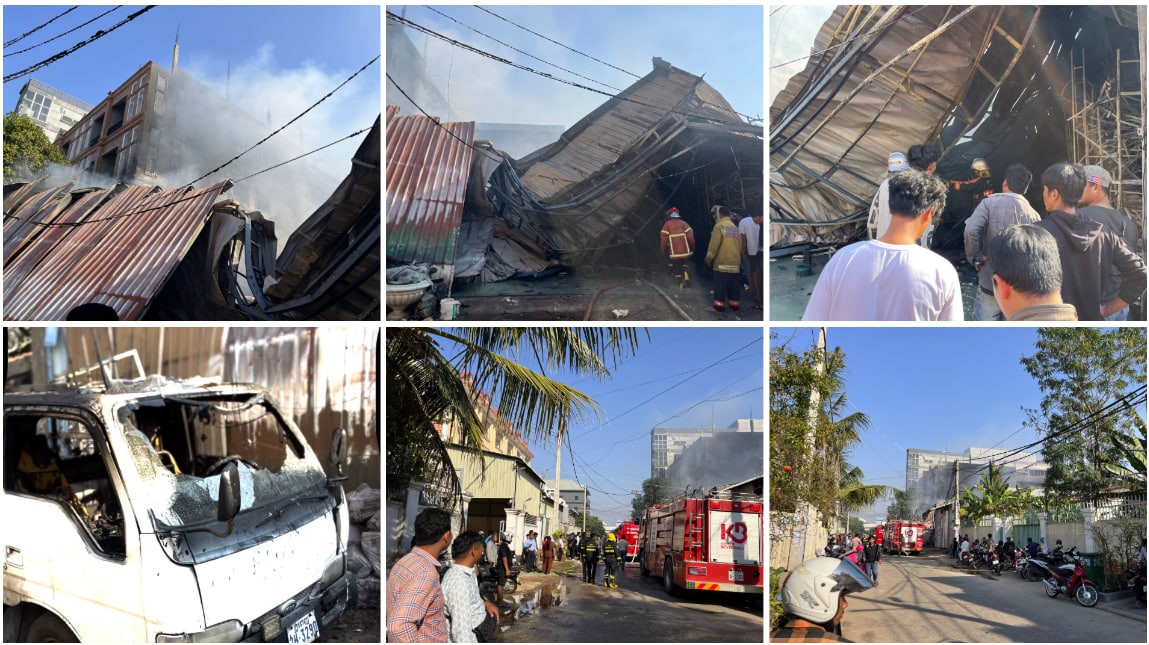 អគ្គិភ័យឆាបឆេះឃ្លាំងស្តុកសម្ភារដេគ័រតុបតែងរោងស្ទេីរទាំងស្រុង រួមទាំងរថយន្ត១គ្រឿង