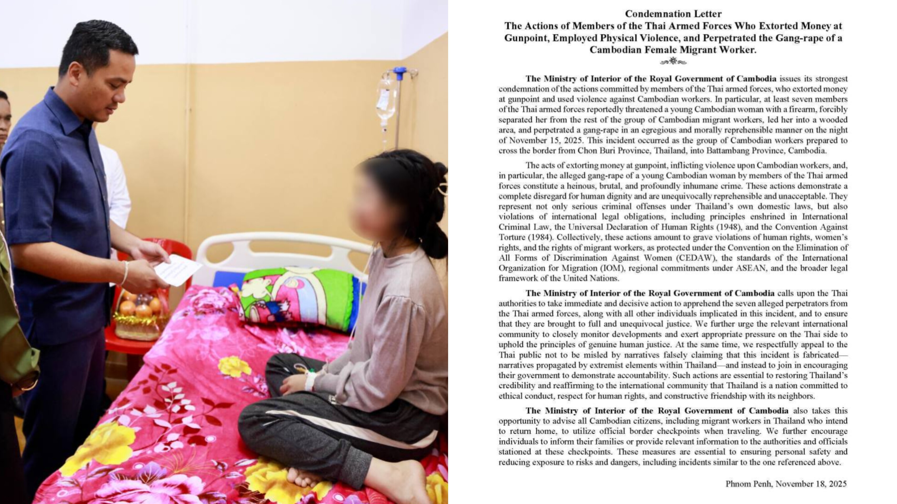 អាជ្ញាធរខេត្តបាត់ដំបង បានធ្វើការថ្កោលទោសដាច់អហង្ការចំពោះទង្វើអមនុស្សធម៌ និងឃោរឃៅបំផុតរបស់ក្រុមទាហានឈុតខ្មៅថៃ ដែលជាការរំលោភបំពានយ៉ាងធ្ងន់ធ្ងរលើសិទ្ធិមនុស្ស និងសិទ្ធិស្ត្រី