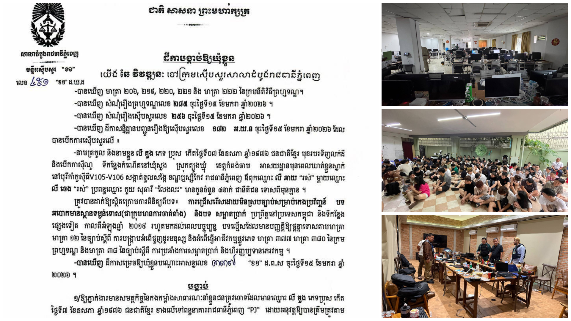 ក្នុងខែដំបូងឆ្នាំ២០២៦ កម្ពុជា បន្តបើកប្រតិបត្តិការទ្រង់ទ្រាយធំ បង្ក្រាបក្រុមឧក្រិដ្ឋជនឆបោកតាមប្រព័ន្ធបច្ចេកវិទ្យា នៅទីតាំង ១៩០កន្លែង និងឃាត់ខ្លួនជនសង្ស័យជាង ២ពាន់នាក់