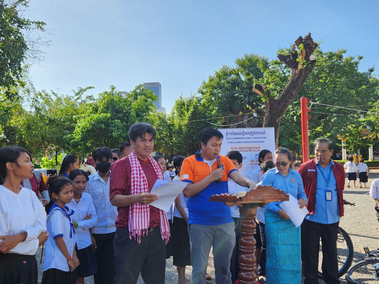 ភ្នំពេញ៖ អង្គការ អេដ អេ អាកស្យុង, Foyer Lataste និងដៃគូនៅក្នុងសម្ព័ន្ធកុមារក្រៅសាលា បានចាប់ផ្តើមយុទ្ធនាការជិះកង់ក្នុងរយៈចម្ងាយ ៤២៥គីឡូម៉ែត្រ ដើម្បីអំពាវនាវដល់សិស្សានុសិស្សនៅទូទាំងតំបន់គោលដៅ ត្រៀមខ្លួនសម្រាប់ឆ្នាំសិក្សាថ្មី ដែលនឹងចាប់ផ្ដើមនាខែធ្នូ ឆ្នាំ២០២៣។ ម្យ៉ាងវិញទៀត ដើម្បីជំរុញឱ្យកុមារដែលងាយនឹងបាត់បង់ឱកាសក្នុងការរៀនសូត្រ ទទួលនូវលទ្ធភាពតាមរយៈសំភារសិក្សា កាបូប ថ្នាក់បំប៉ន ក៏ដូចជាកង់ និងមធ្យោបាយមួយចំនួនទៀត ដើម្បីជំរុញឱ្យពួកគាត់អាចបន្តការសិក្សាទៅមុខបានដោយមិនបោះបង់ចោល ទោះជួបការលំបាកយ៉ាងណាក៏ដោយ។