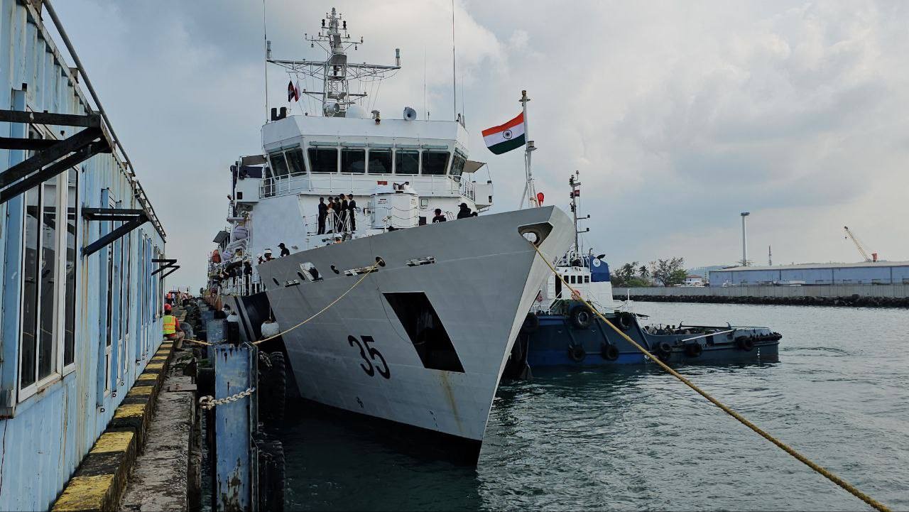 ខេត្តព្រះសីហនុ ៖ នាវាកងទ័ពជើងទឹកប្រទេសឥណ្ឌាចំនួន ២ គ្រឿង បានចូលចតដល់កំពង់ផែស្វយ័តក្រុងព្រះសីហនុនៃប្រទេសកម្ពុជា ដោយសុវត្ថិភាព ក្នុងដំណេីរទស្សនកិច្ចរយៈពេល៤ថ្ងៃពីថ្ងៃទី១៤-១៧ ខែកុម្ភៈ ឆ្នាំ២០២៥ ក្នុងគោលបំណងដើម្បីពង្រឹងទំនាក់ទំនងយូរអង្វែងរវាង កងកម្លាំងដែនសមុទ្រនៃប្រទេសទាំងពីរ ។