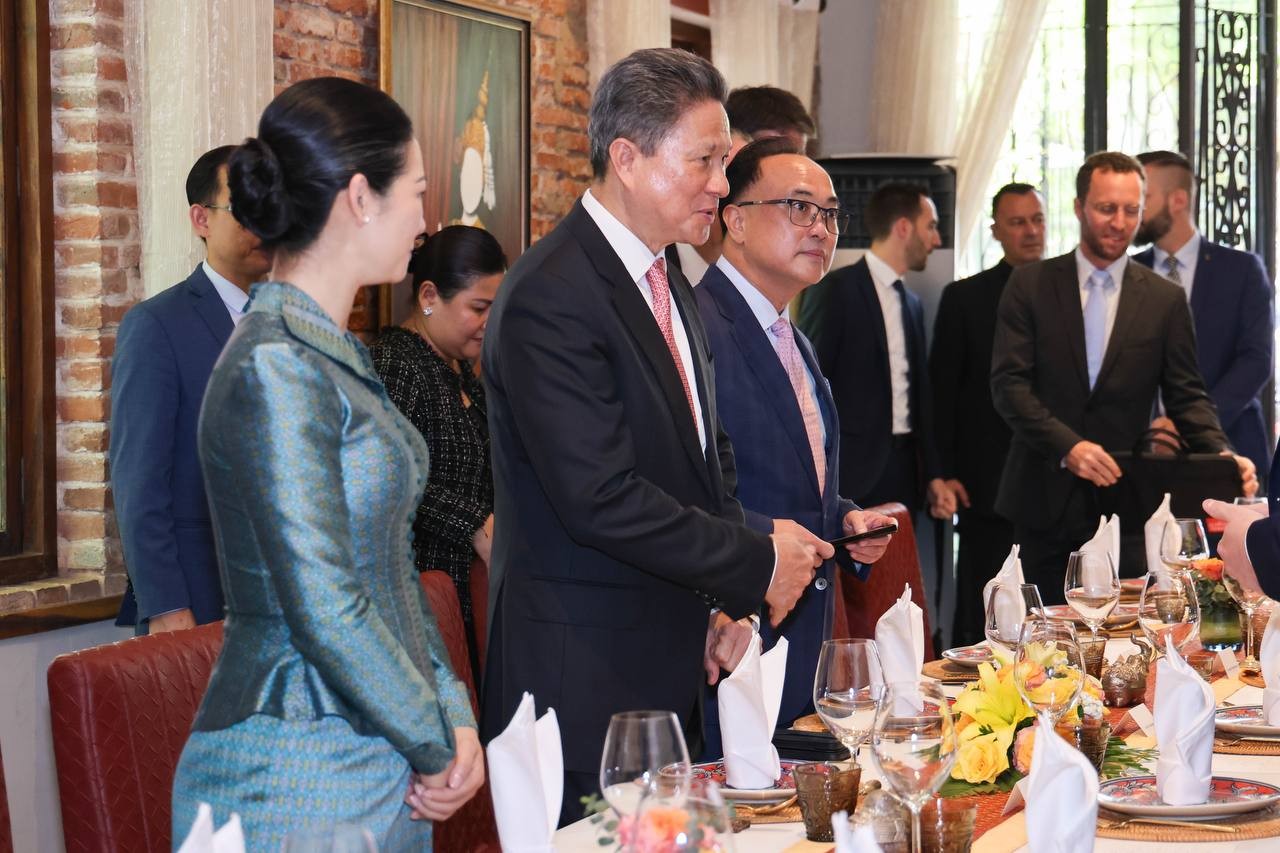 ឥស្សរជនជាន់ខ្ពស់ពីកម្ពុជាដែលអញ្ជើញចូលរួមអាហារថ្ងៃត្រង់នេះរួមមាន ឯកឧត្តម ស៊ុន ចាន់ថុល ឧបនាយករដ្ឋមន្ត្រី អនុប្រធានទី១ នៃក្រុមប្រឹក្សាអភិវឌ្ឍន៍កម្ពុជា, លោកជំទាវ ចម និម្មល រដ្ឋមន្ត្រីក្រសួងពាណិជ្ជកម្ម, អ្នកឧកញ៉ា គិត ម៉េង ប្រធានសភាពាណិជ្ជកម្មកម្ពុជា និងជាប្រធានក្រុមប្រឹក្សាពិគ្រោះយោបល់ធុរកិច្ចអាស៊ានសម្រាប់កម្ពុជា និងថ្នាក់ដឹកនាំពីនិយ័តករមូលបត្រកម្ពុជា។