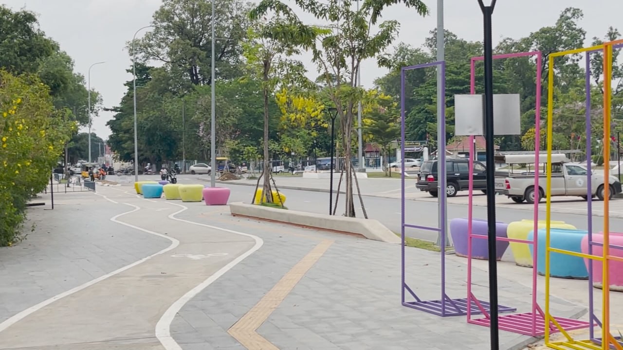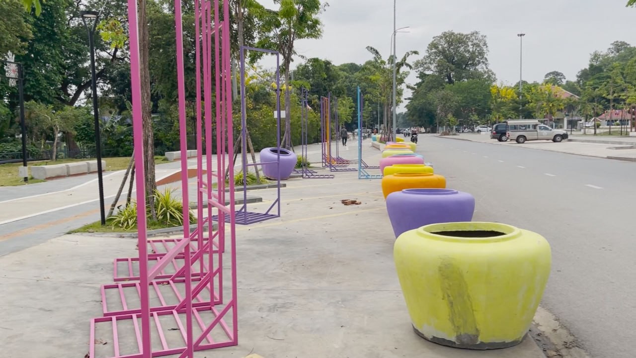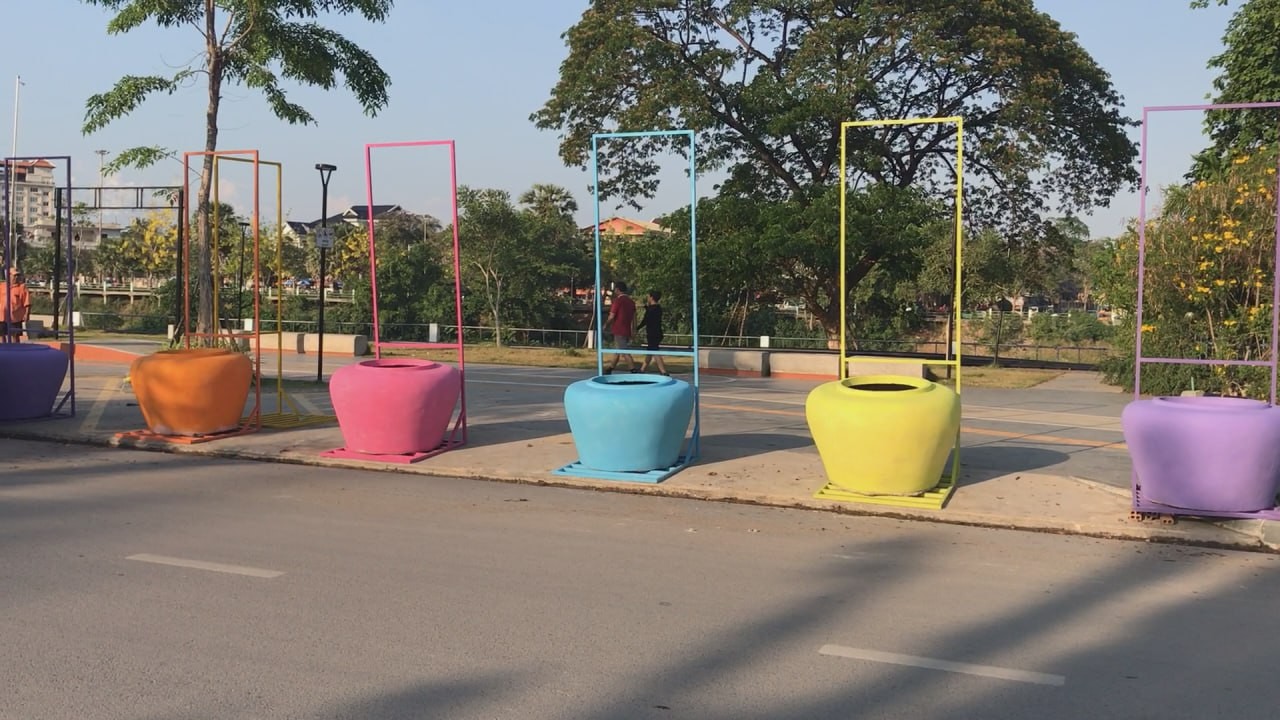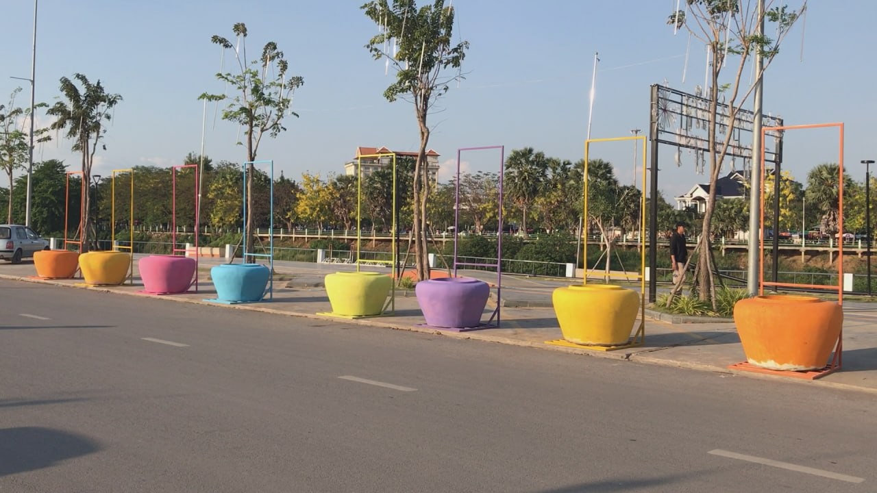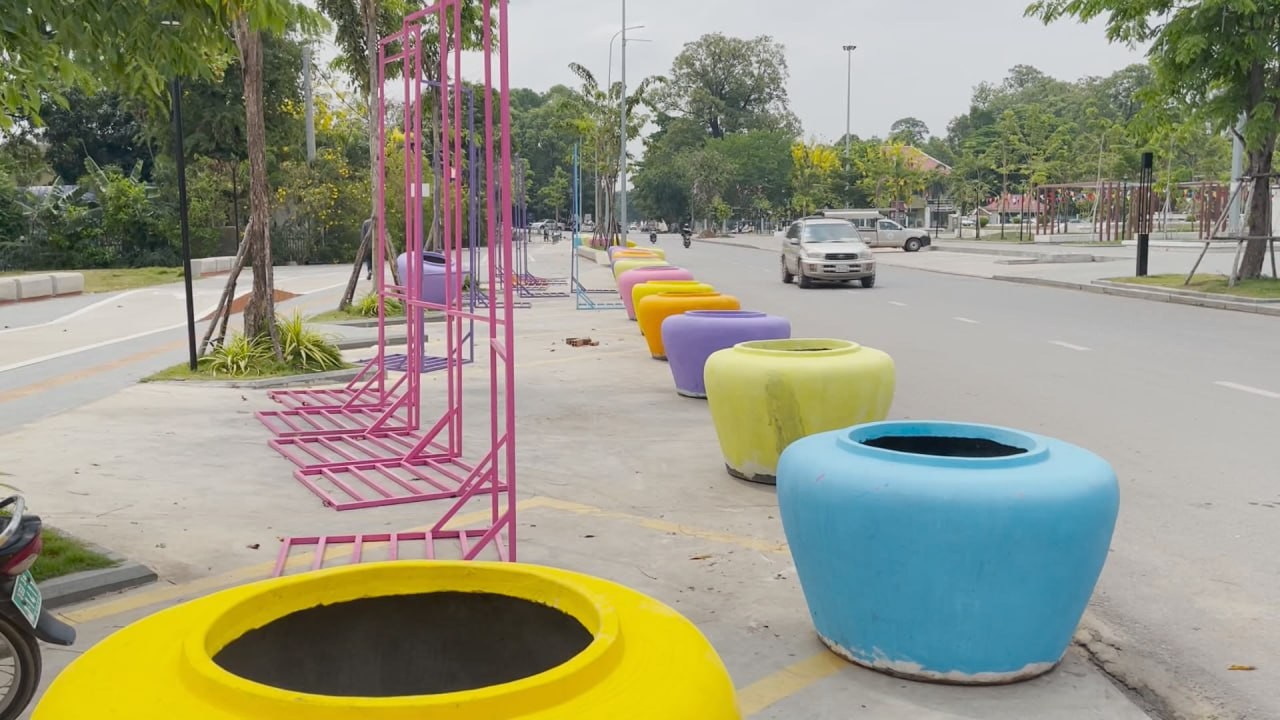 ពាងទឹកចម្រុះពណ៌ជាច្រើន ត្រូវបានដឹកយកមកដាក់នៅតំបន់ត្រជាក់ចិត្ត ត្រៀមការលេងកម្សាន្តក្នុងការបើកព្រឹត្តិការណ៍សង្រ្កាន្តបាត់ដំបង