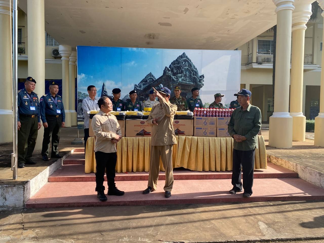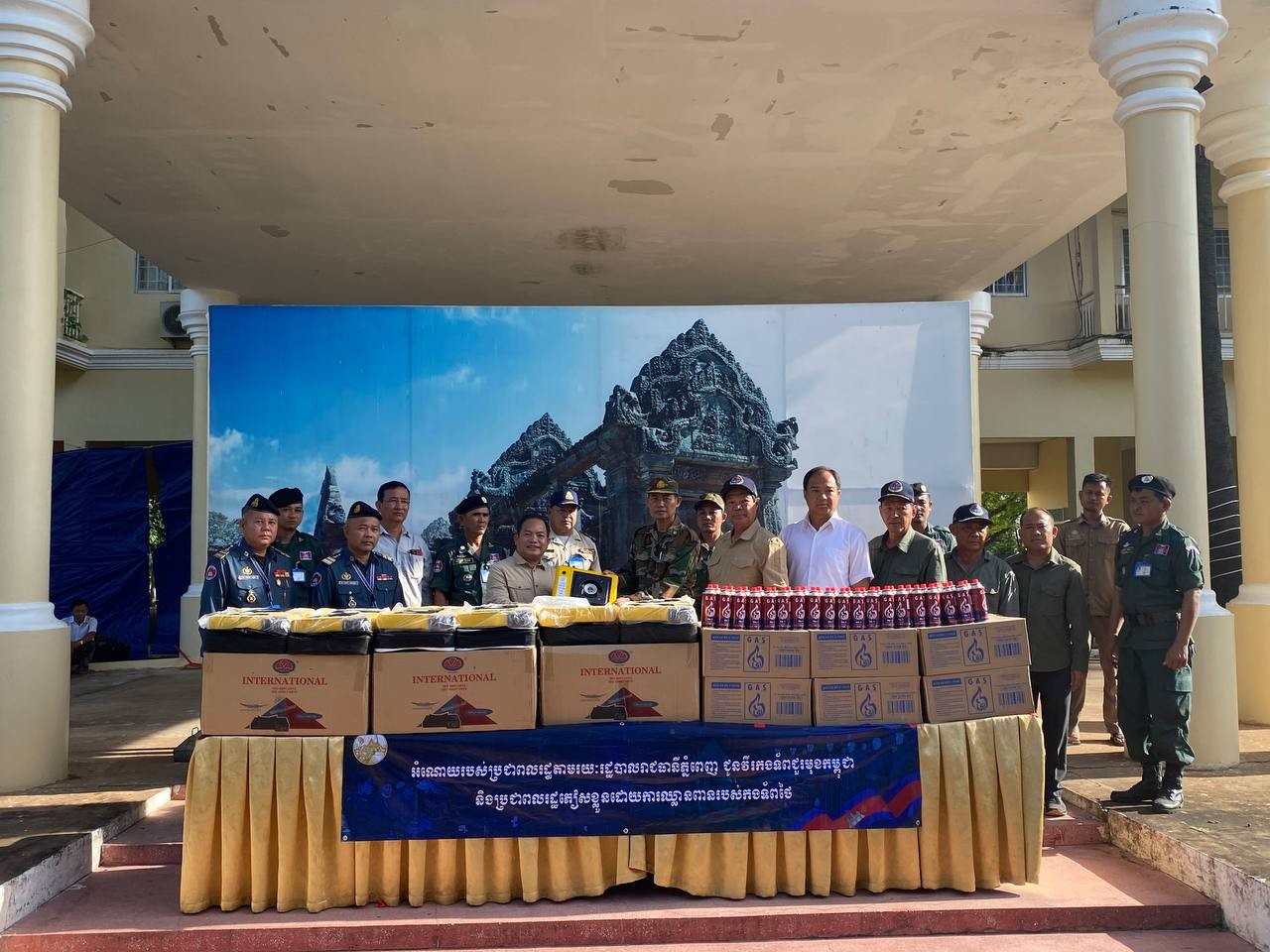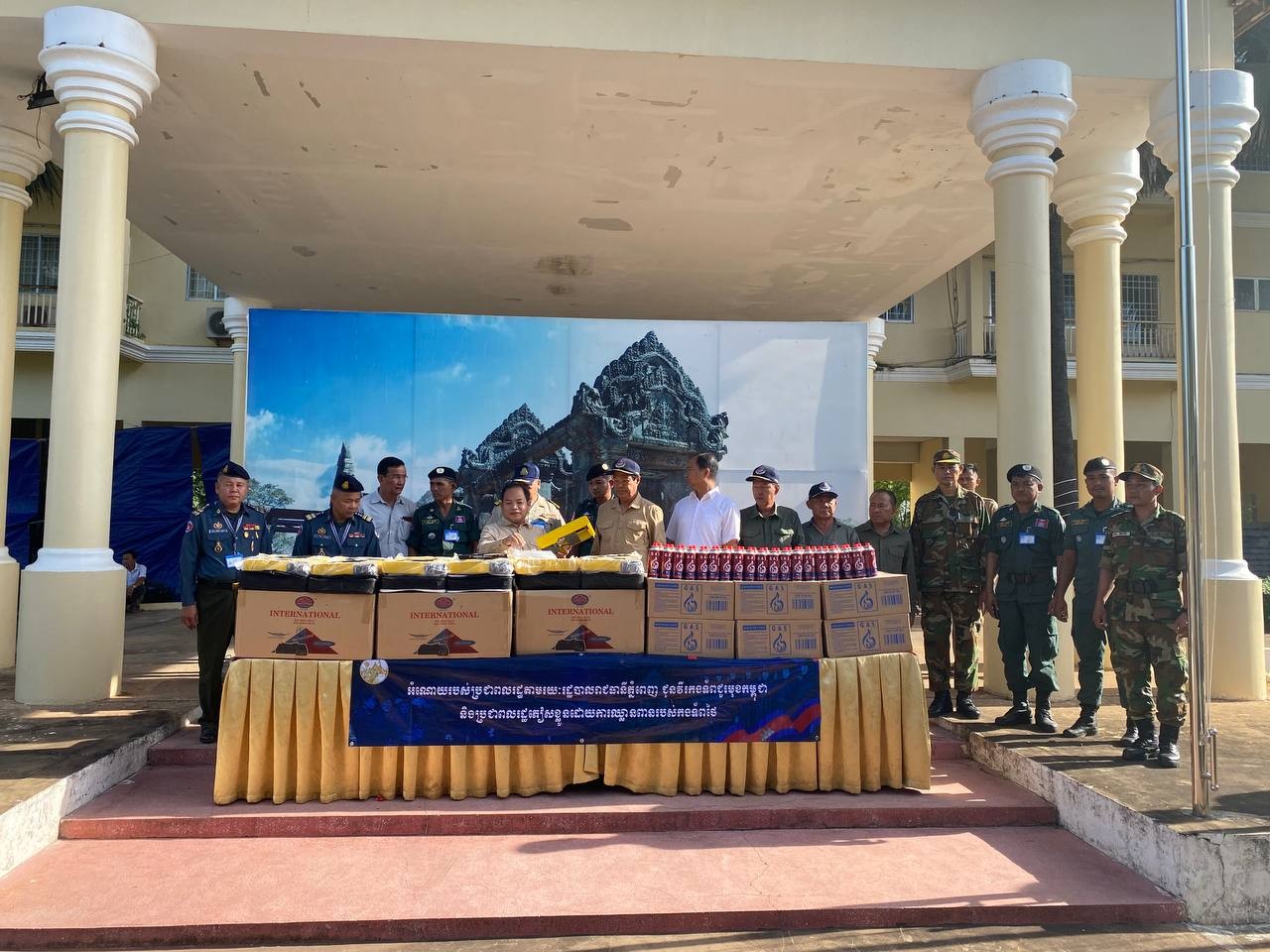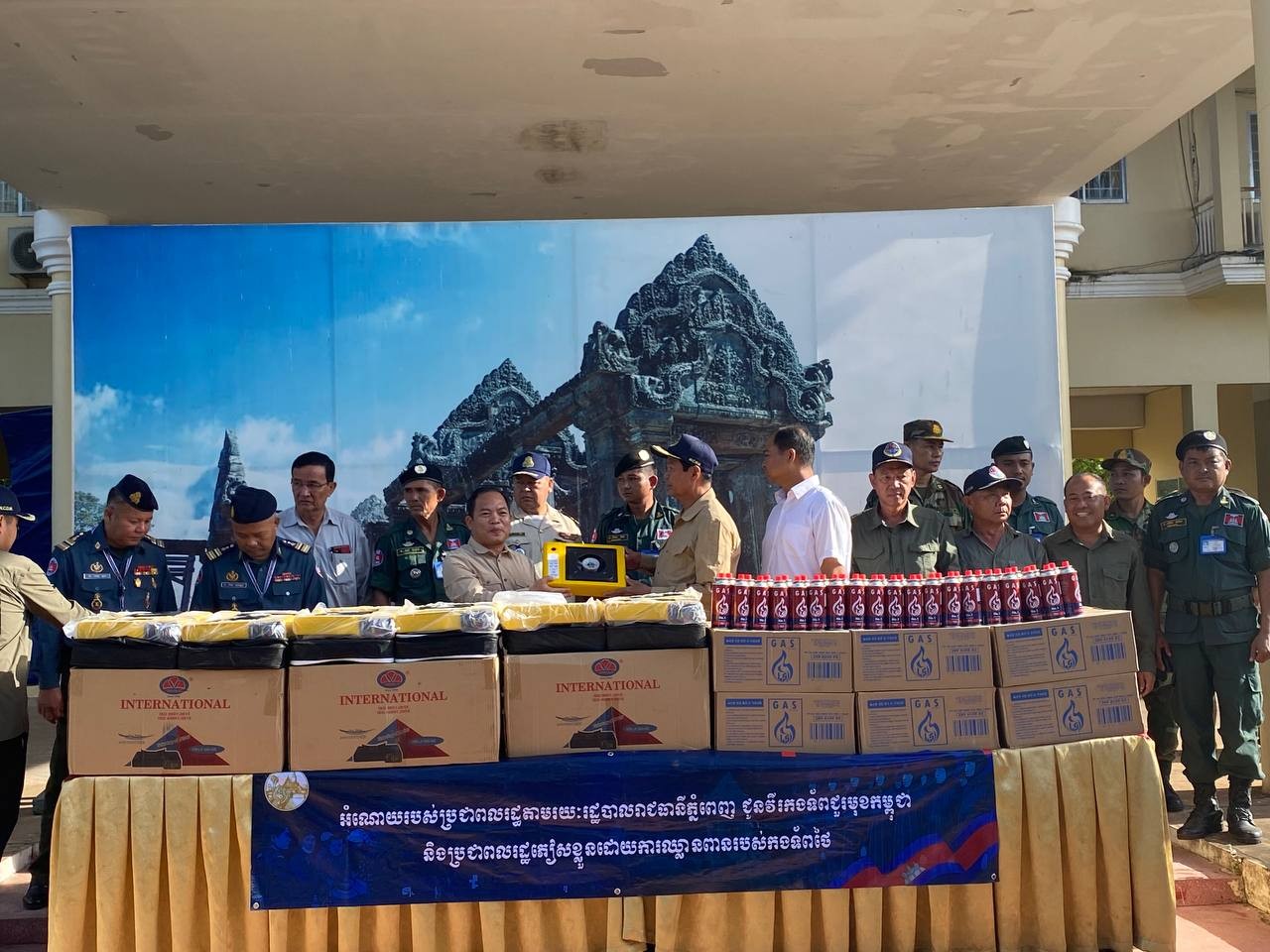 ព្រះវិហារ៖ អំណោយរបស់សម្តេចអគ្គមហាសេនាបតីតេជោ ហ៊ុន សែន ប្រធានព្រឹទ្ធសភានិងសម្តេចកិត្តិព្រឹទ្ធបណ្ឌិត ប៊ុន រ៉ានី ហ៊ុនសែន ដែលមាន ចង្ក្រានហ្គាសធុនតូចចល័តចំនួន ៦០០០ចង្ក្រាន កំប៉ុងហ្គាសចំនួន ១២០០០កំប៉ុង ទឹកបរិសុទ្ធ និងមីជាច្រើនកេស ត្រូវបានលោក អុីមរ៉ន ហាស្សាន់ អភិបាលរងរាជធានី តំណាងលោក ឃួង ស្រេង អភិបាលរាជធានីភ្នំពេញ នាំទៅប្រគល់ជូនដល់វីរកងទ័ពតាមបន្ទាត់ព្រំដែនជួរមុខ និងប្រជាពលរដ្ឋដែលទទួលផលប៉ះពាល់ដោយសារសង្គ្រាមឈ្លានពានរបស់ទាហានថៃមកលើដែនអធិបតេយ្យភាពរបស់កម្ពុជា។