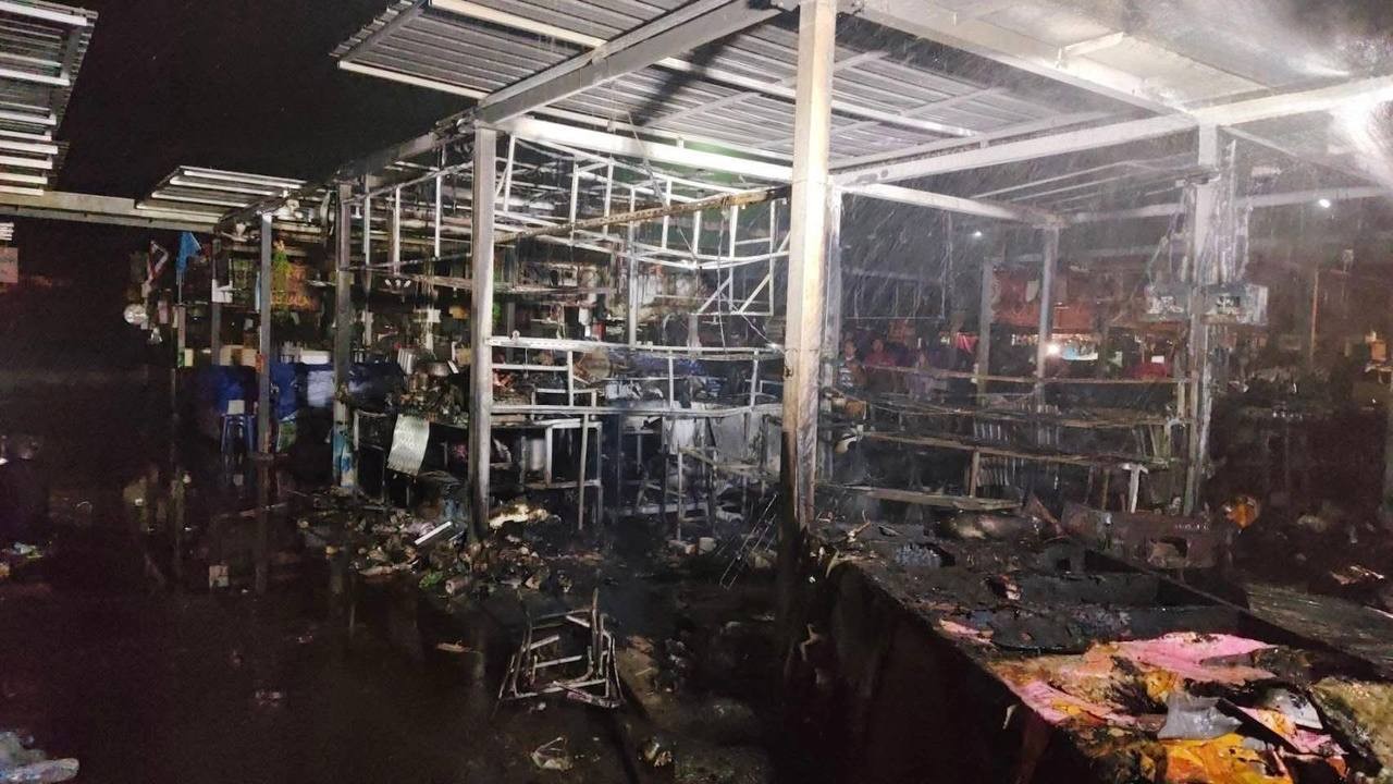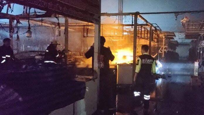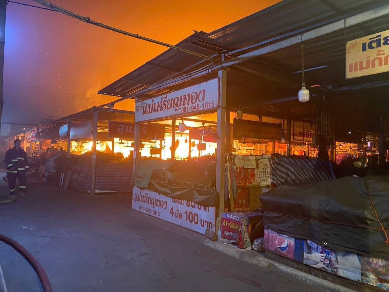 ឆេះតូបលក់ទំនិញជាច្រើនក្នុងផ្សារមួយកន្លែងទល់មុខវត្តសុធុន ក្នុងខេត្តឆាឈឿងសៅ ប្រទេសសៀម